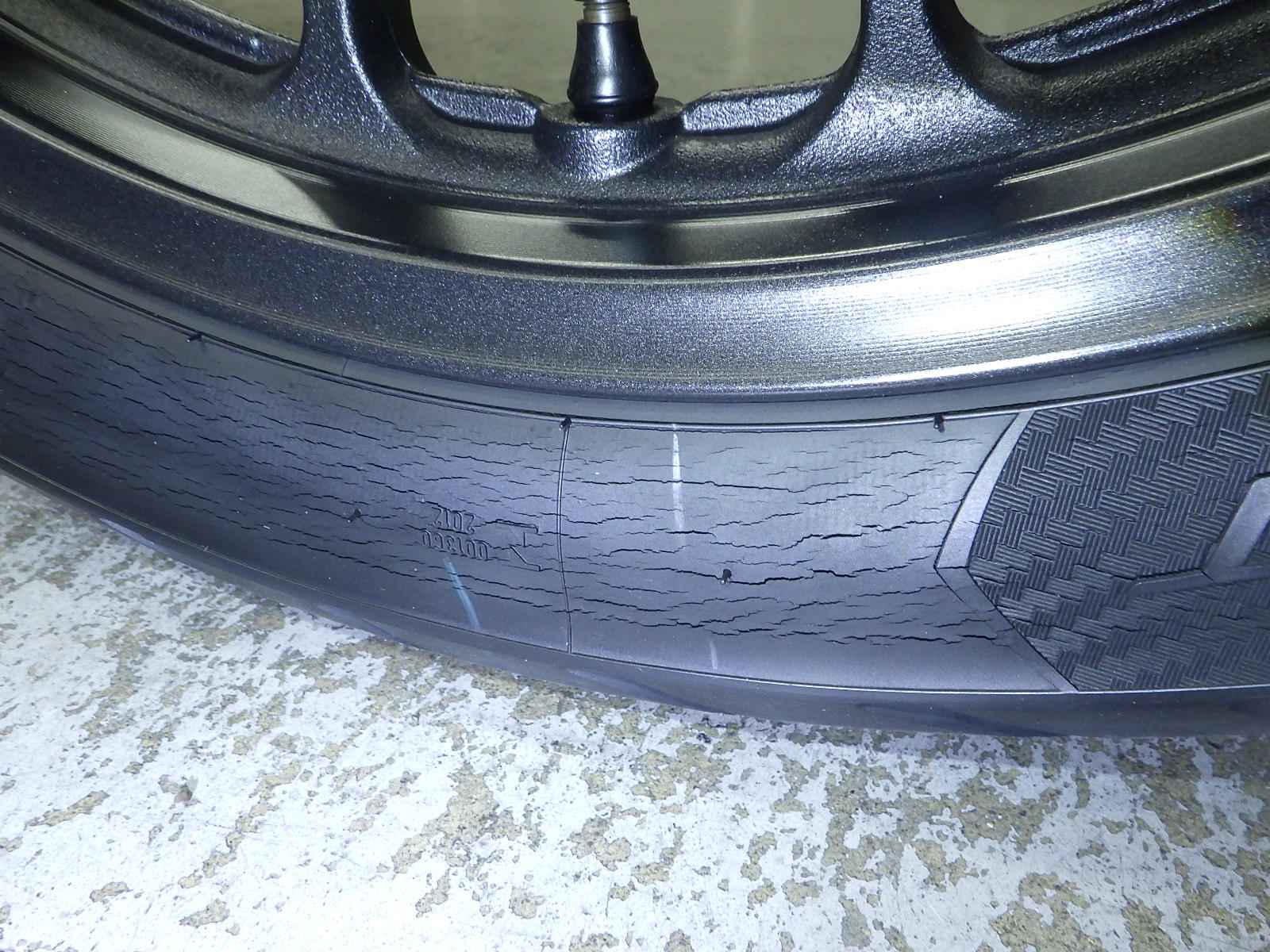 Передняя покрышка: Трещина на шине, требуется замена.