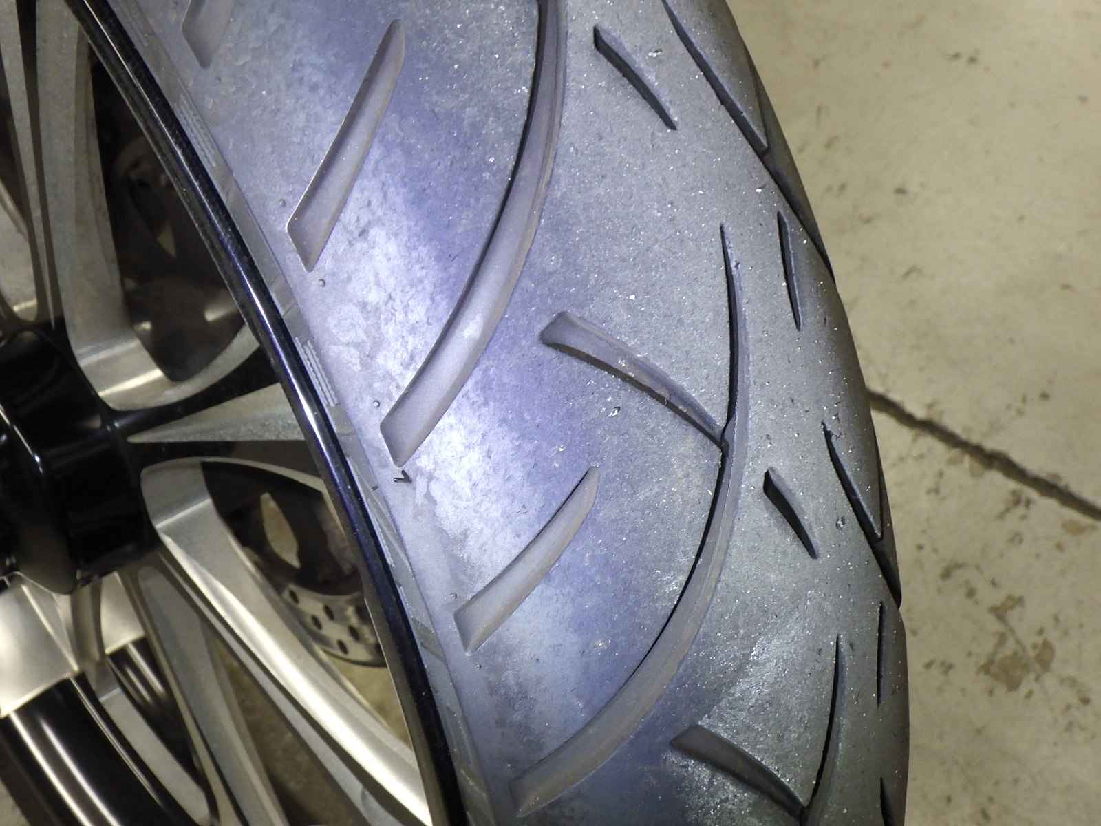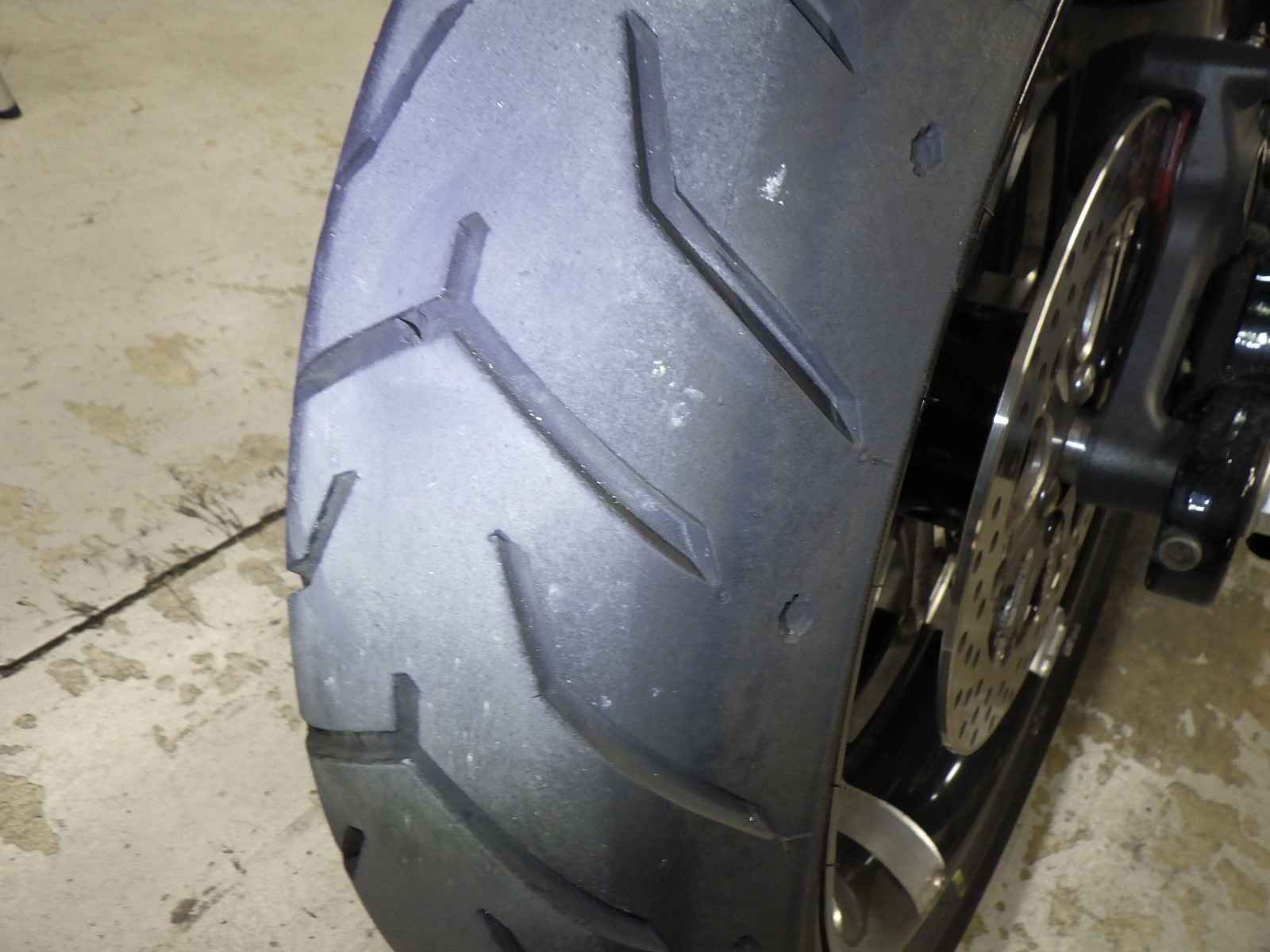 Задняя покрышка: Трещина на шине, требуется замена.