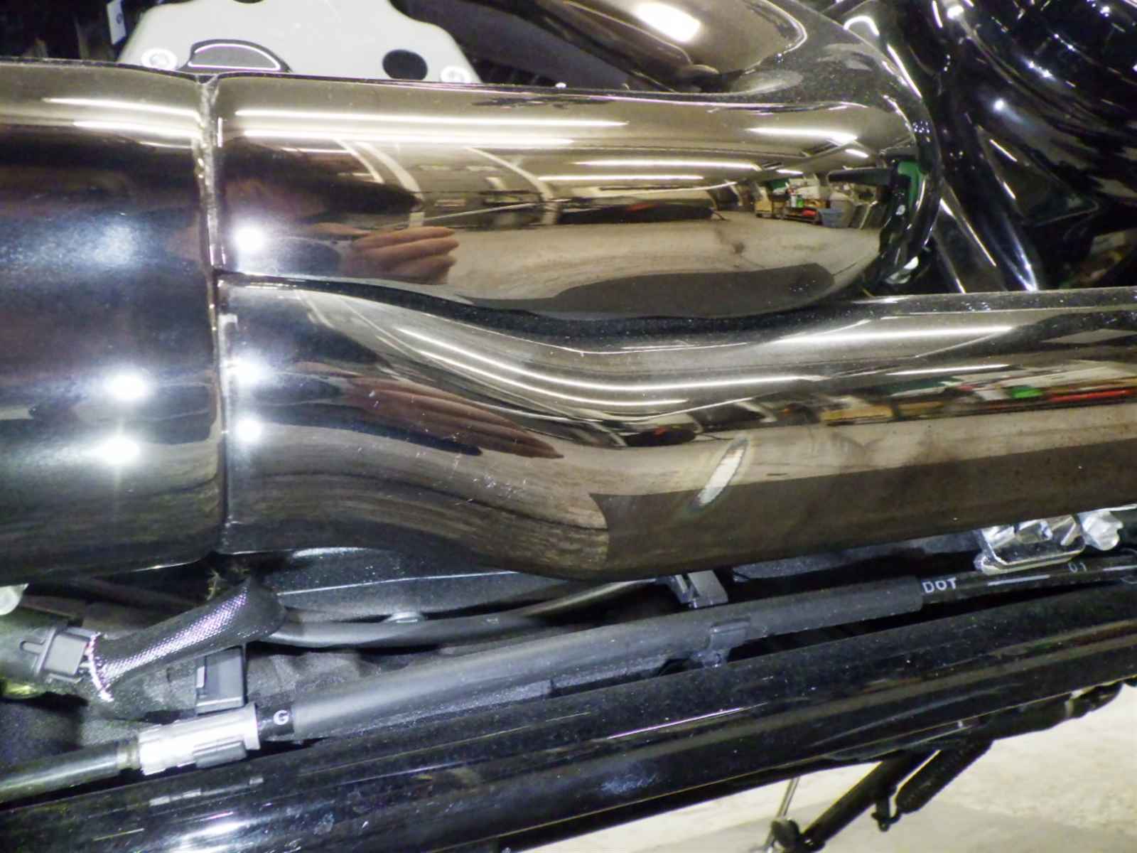 Выхлопная труба: Покрытие мотоцикла облезло, образовав "плешину" в краске