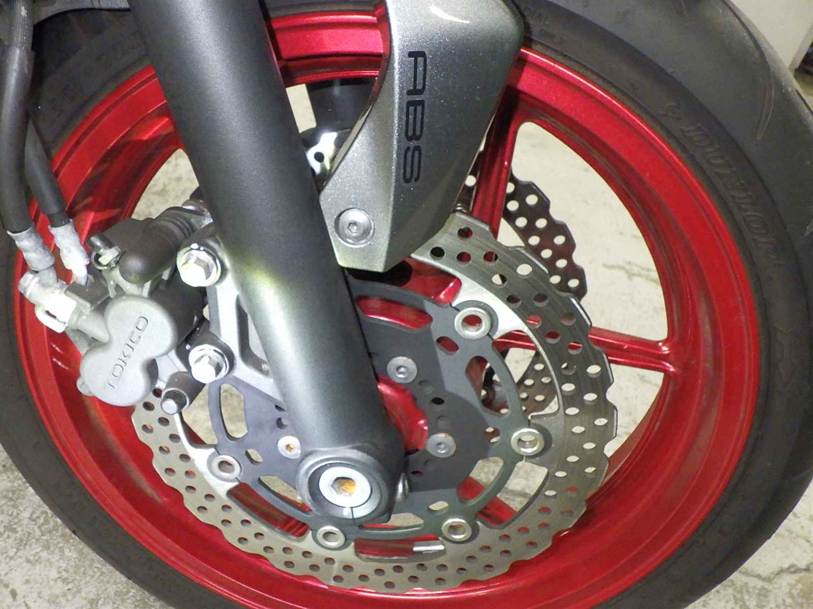 Передняя покрышка: Снижение давления в шине, Трещина требует замены.