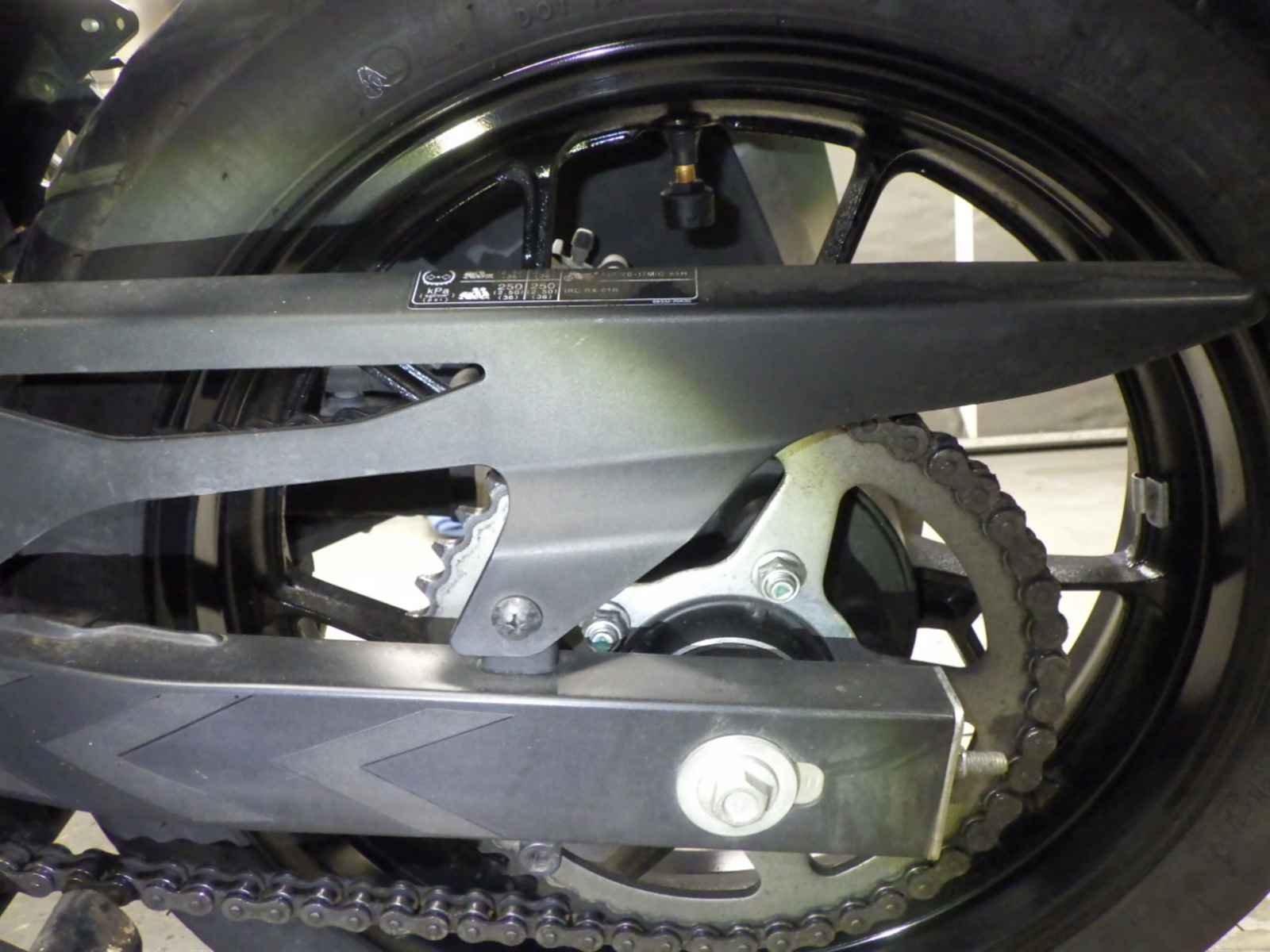 Задняя покрышка: Трещина на шине, требуется замена.
