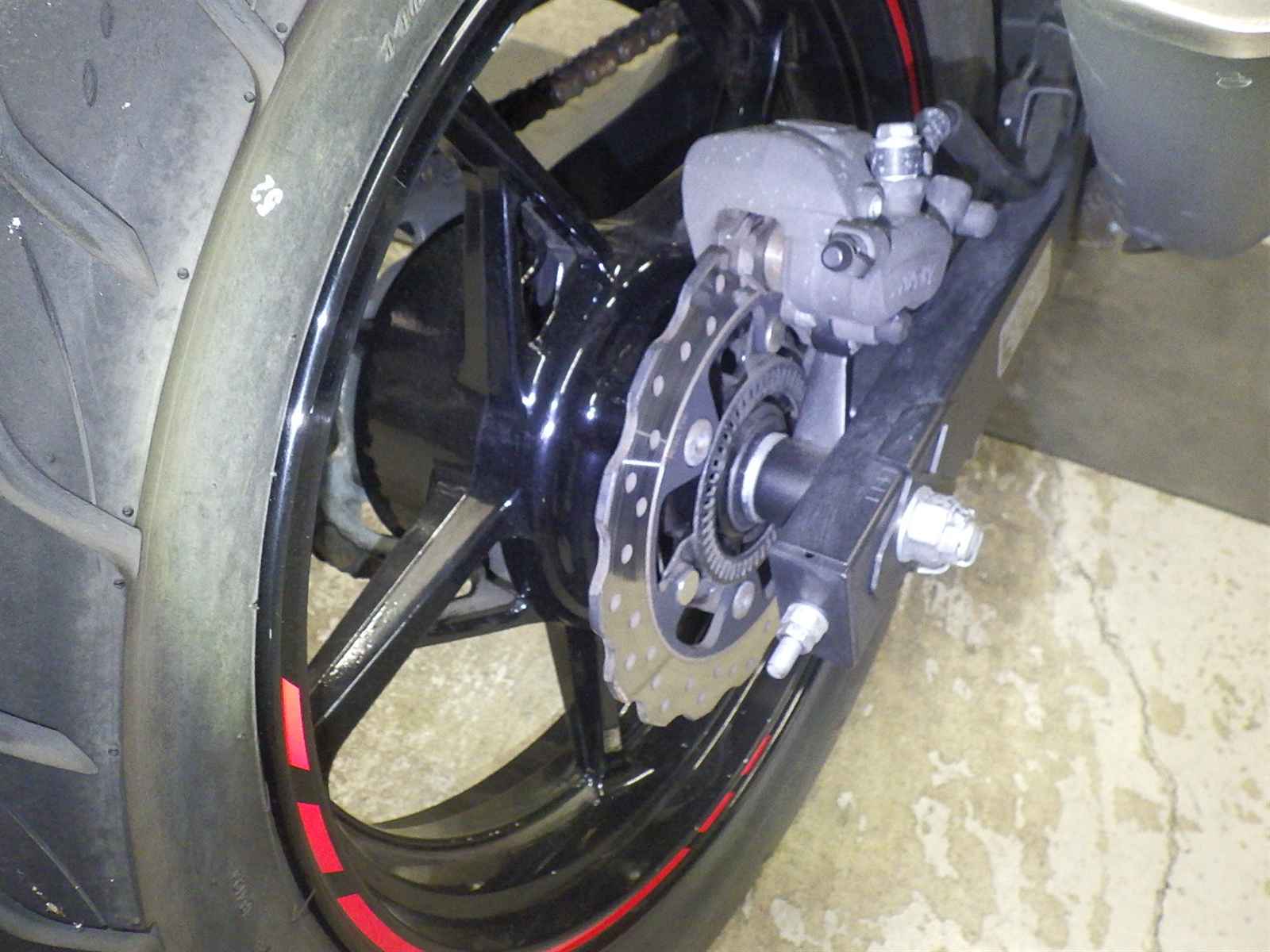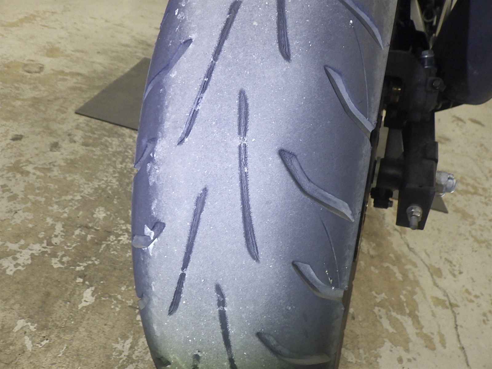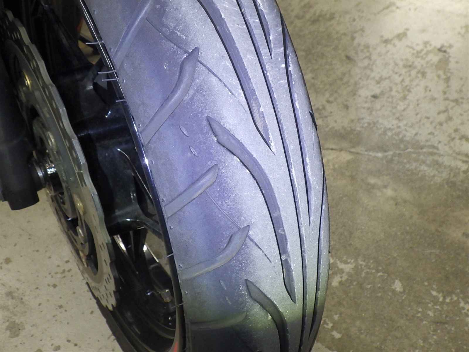 Задняя покрышка: Снижение давления в шине, Трещина требует замены.