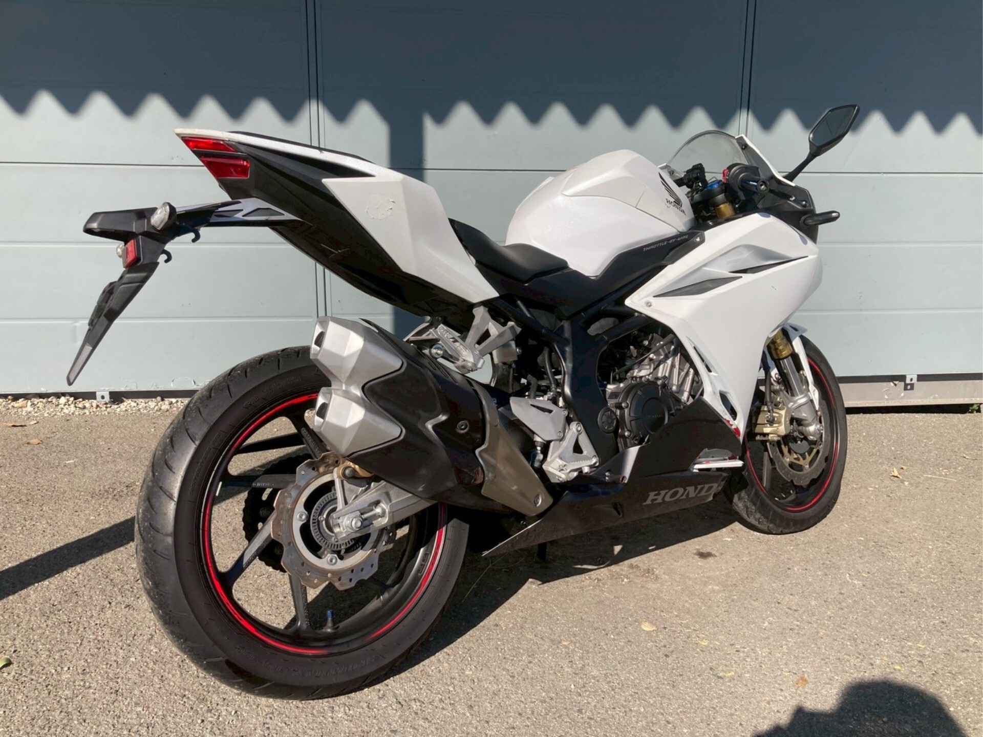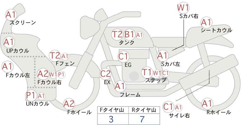 - Правый кожух глушителя поцарапан и болтается.