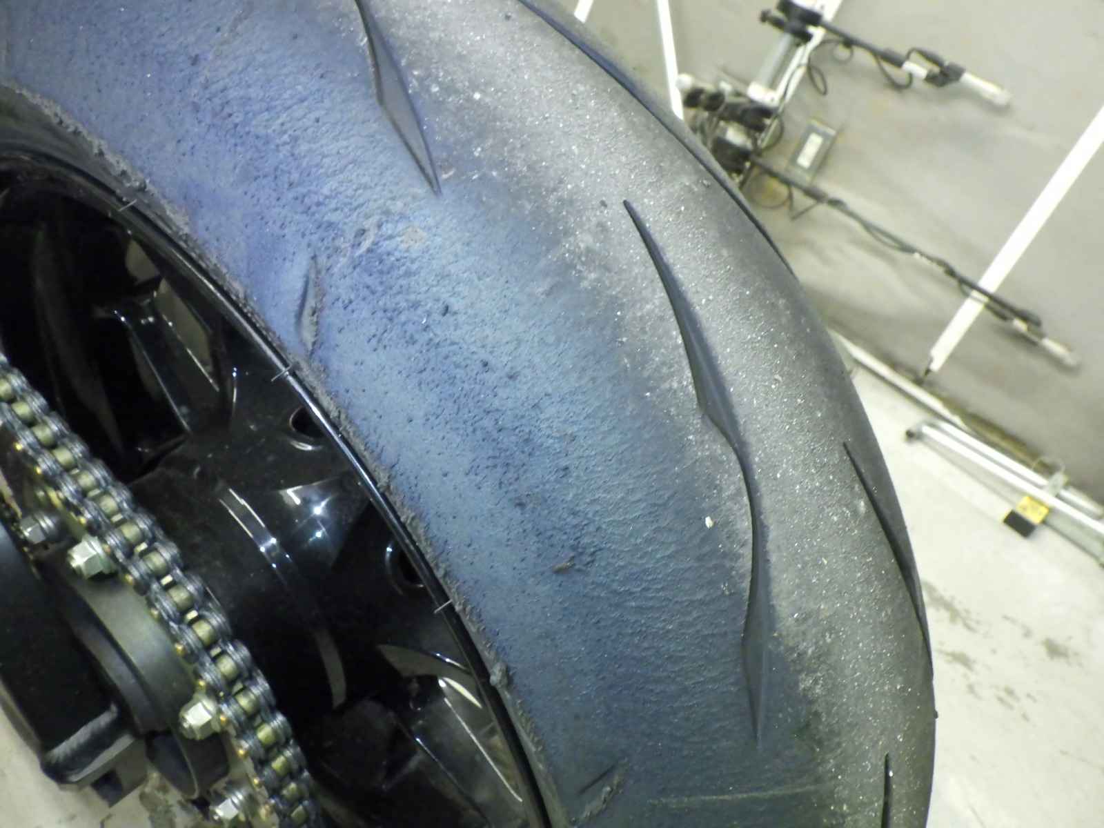 Задняя покрышка: Требуется замена шины, Таять