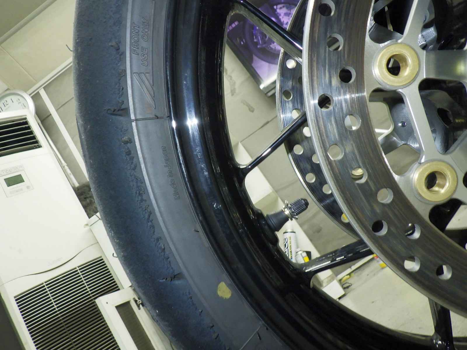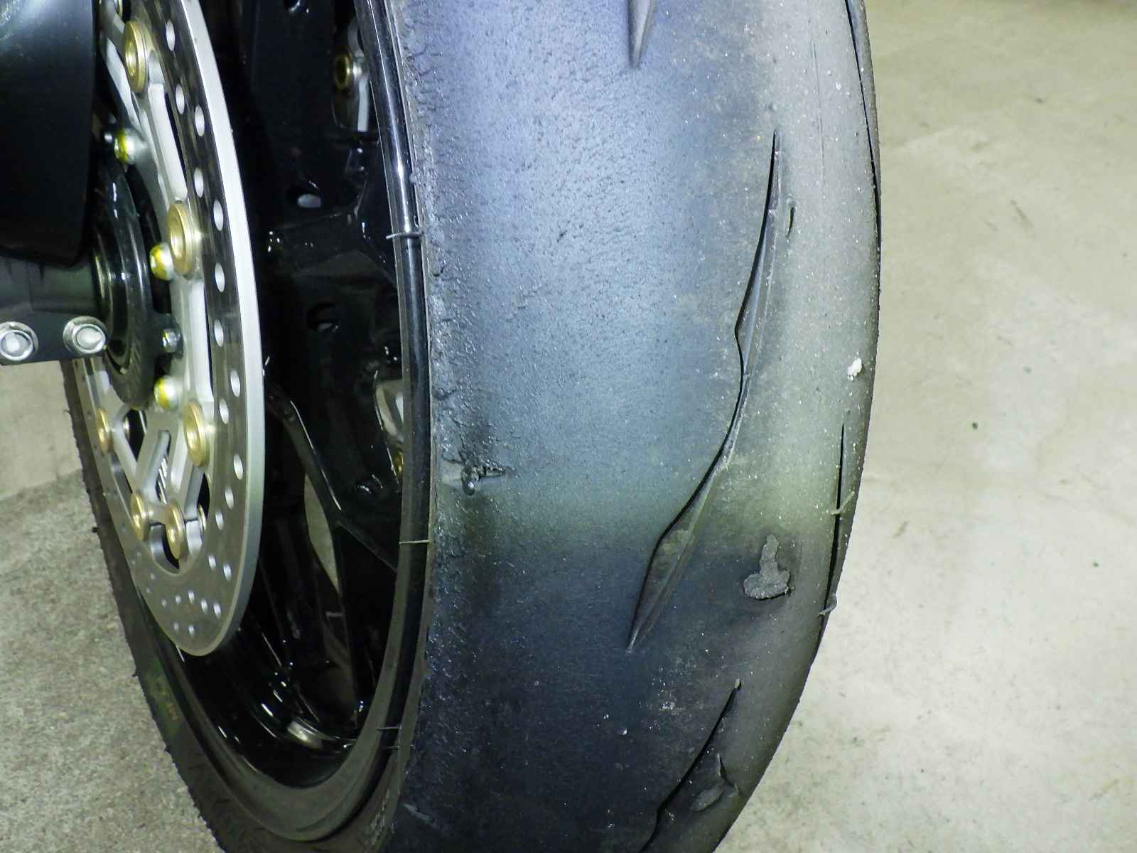 Передняя покрышка: Требуется замена шины, Таять