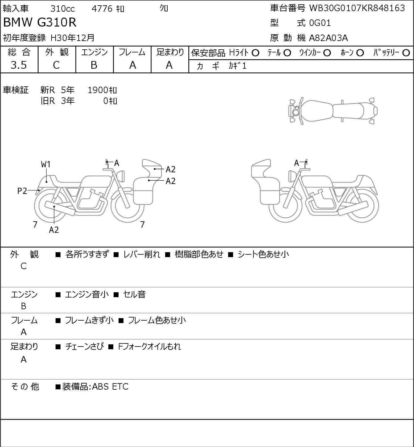 Номер рамы: WB30G0107KR848163
