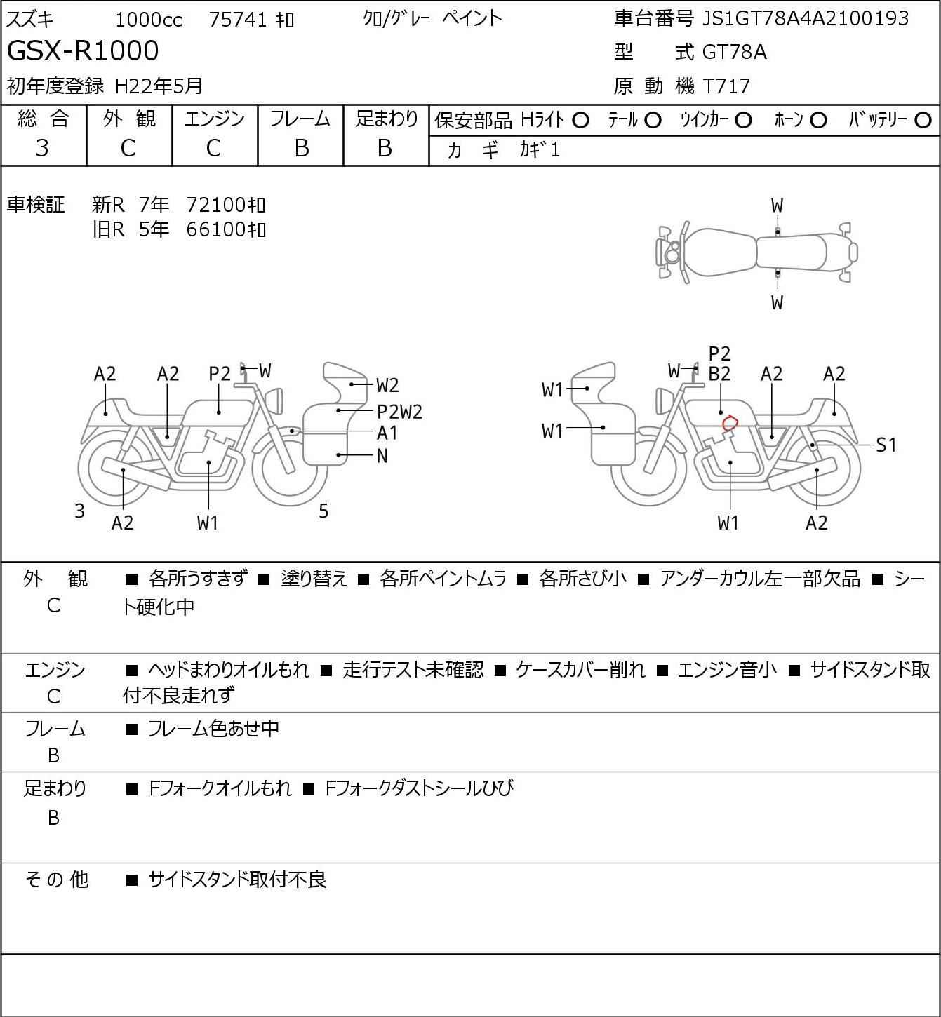 Номер рамы: JS1GT78A4A2100193