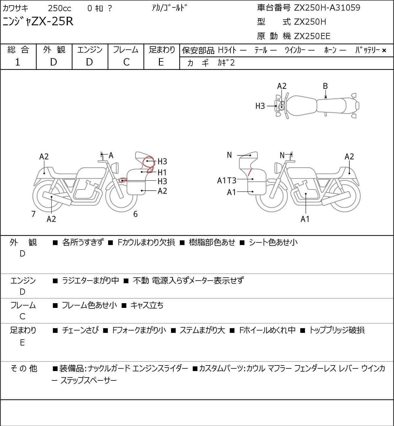 Номер рамы: ZX250H-A31059