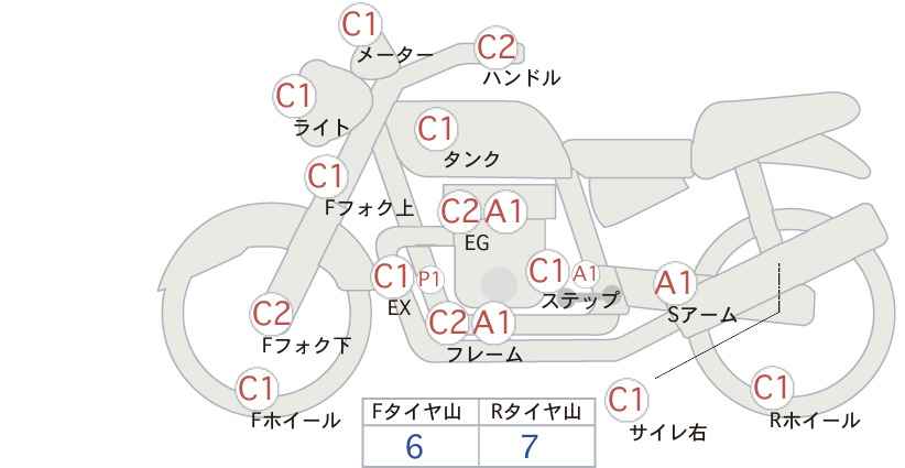 руль, спидометр, крылья, сиденье, подножки