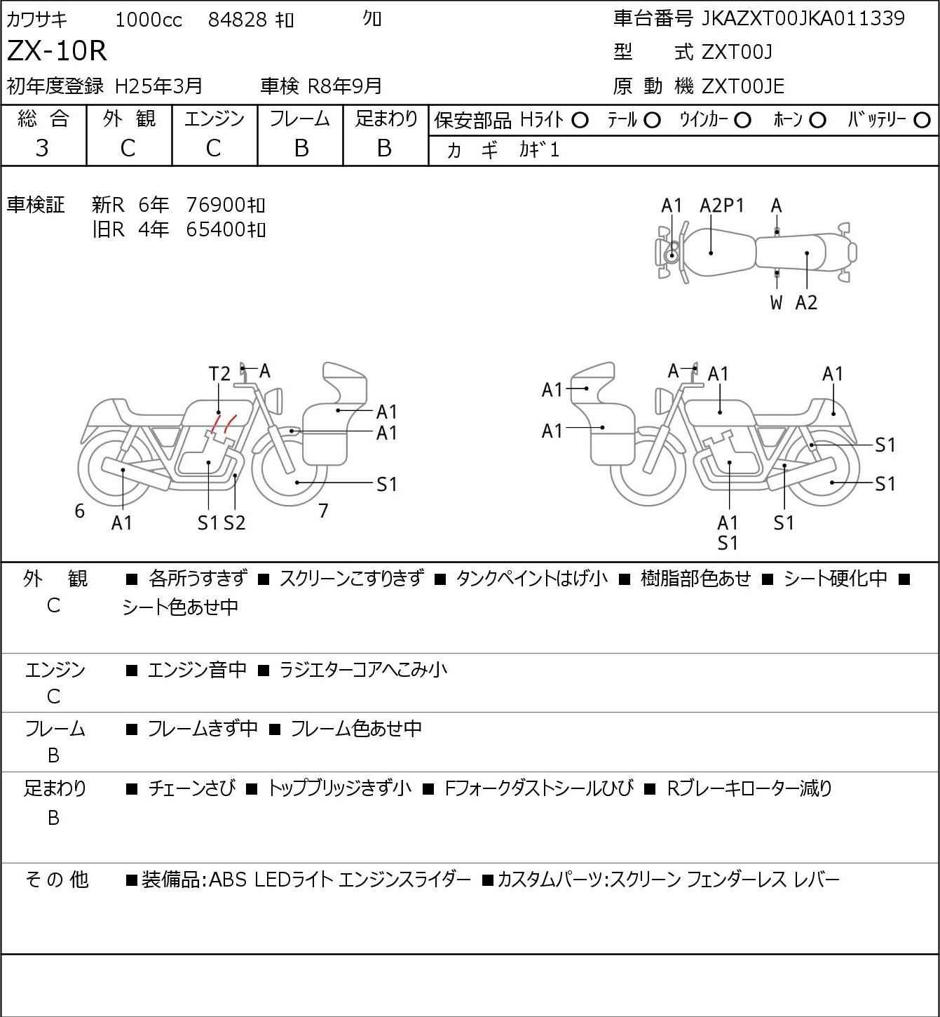 Номер рамы: JKAZXT00JKA011339