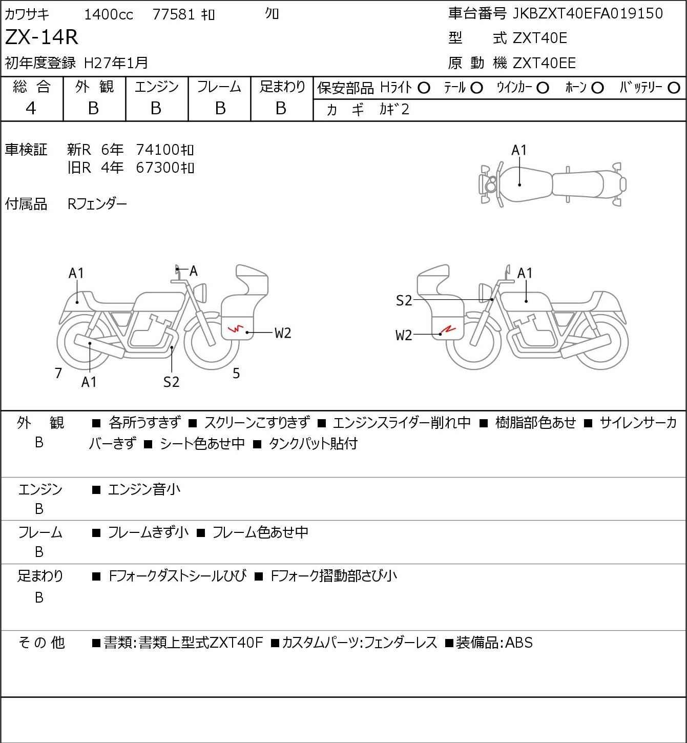 Номер рамы: JKBZXT40EFA019150