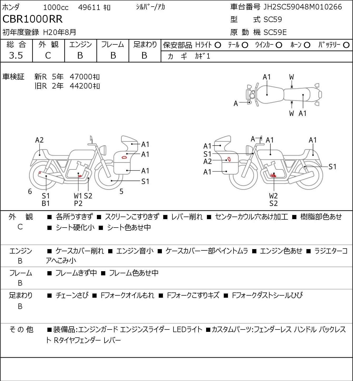 Номер рамы: JH2SC59048M010266