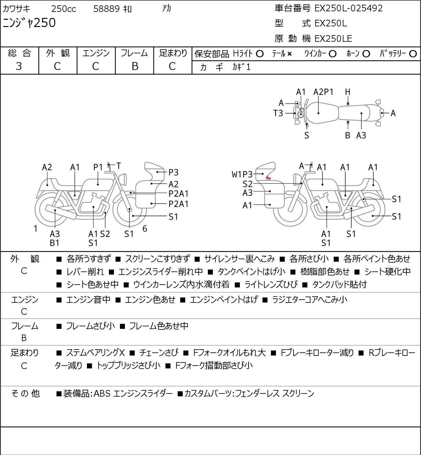 Номер рамы: EX250L-025492
