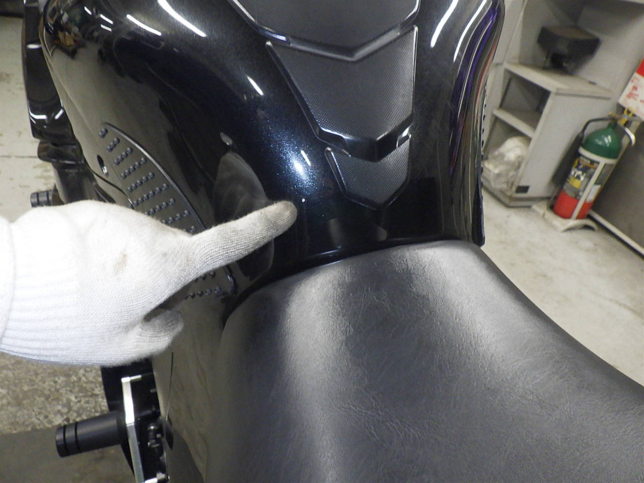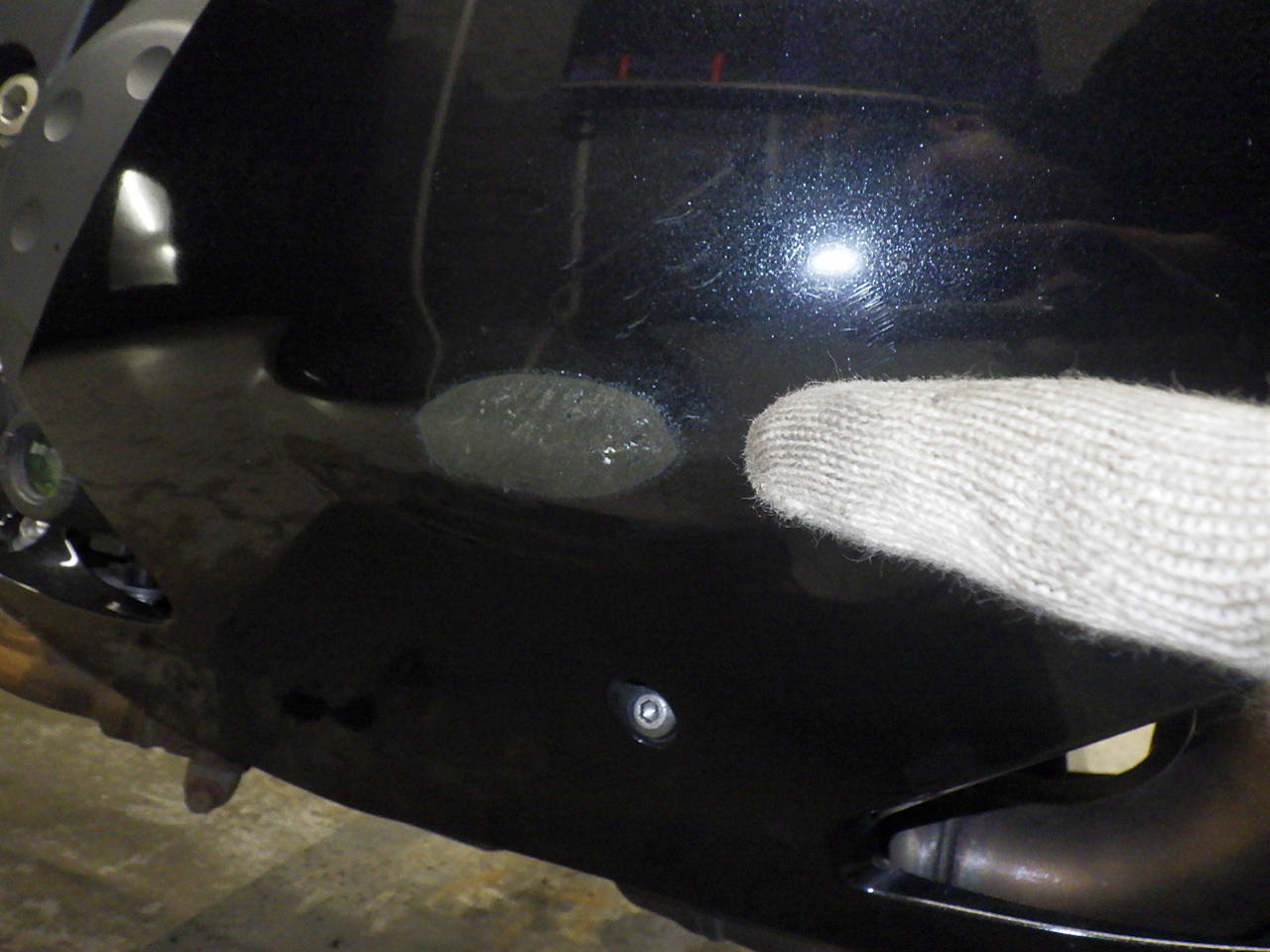 Бензобак: Повреждение бака, покраска с баллончика, Установленный патч