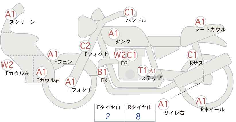 Левая подножка отсутствует (мелкое повреждение)