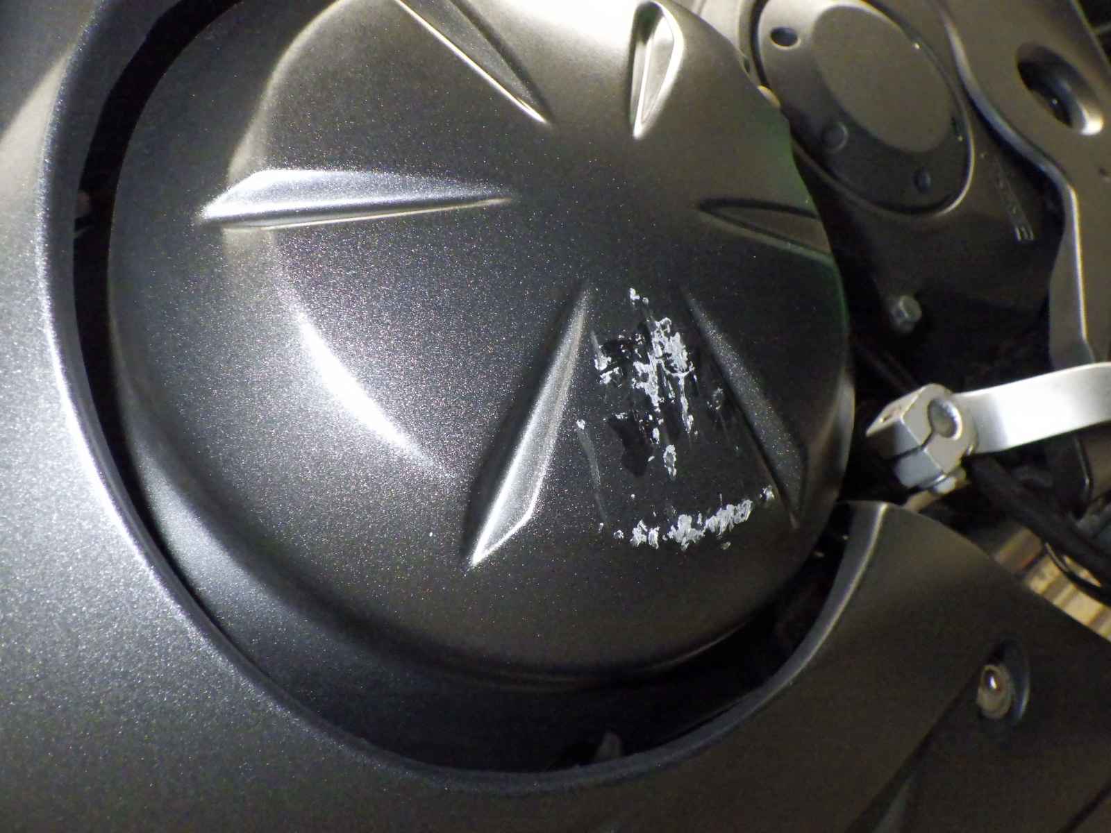 Передний пластик: Верхний недочет Уровень 3, Частичная покраска, Потёртость, Исправленные трещины