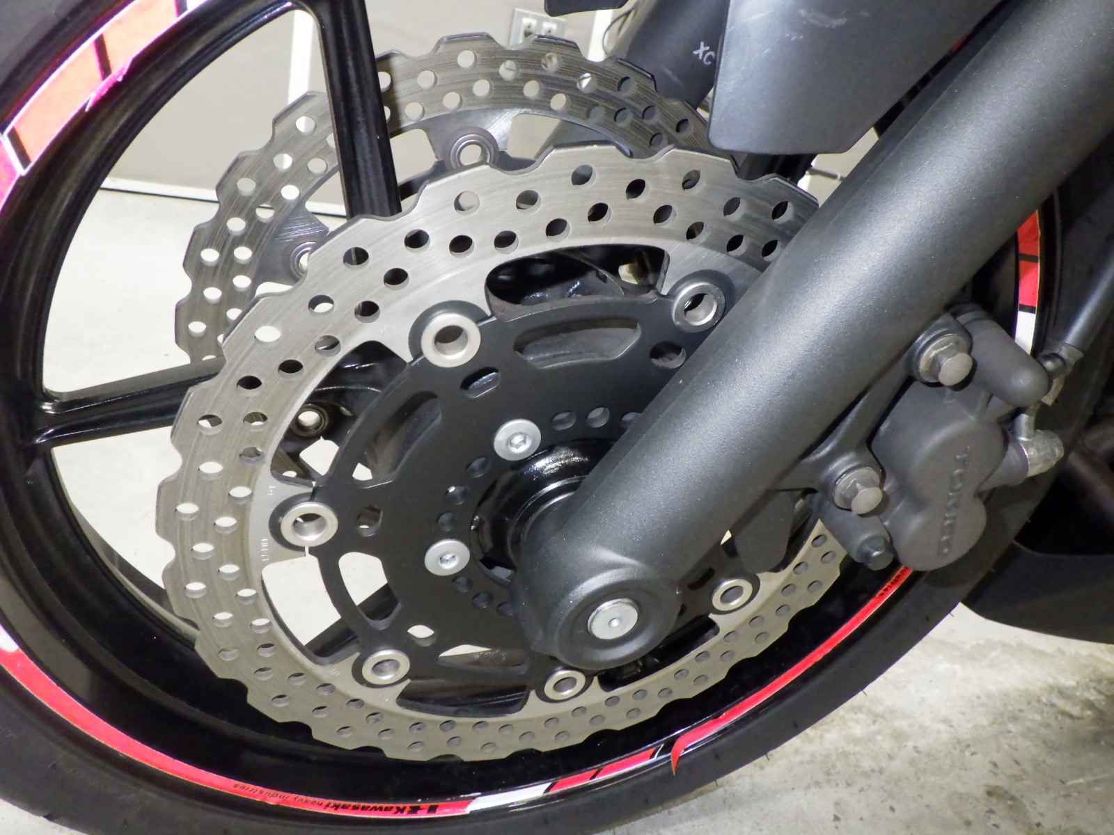 Передняя покрышка: Снижение давления в шине, Трещина требует замены.