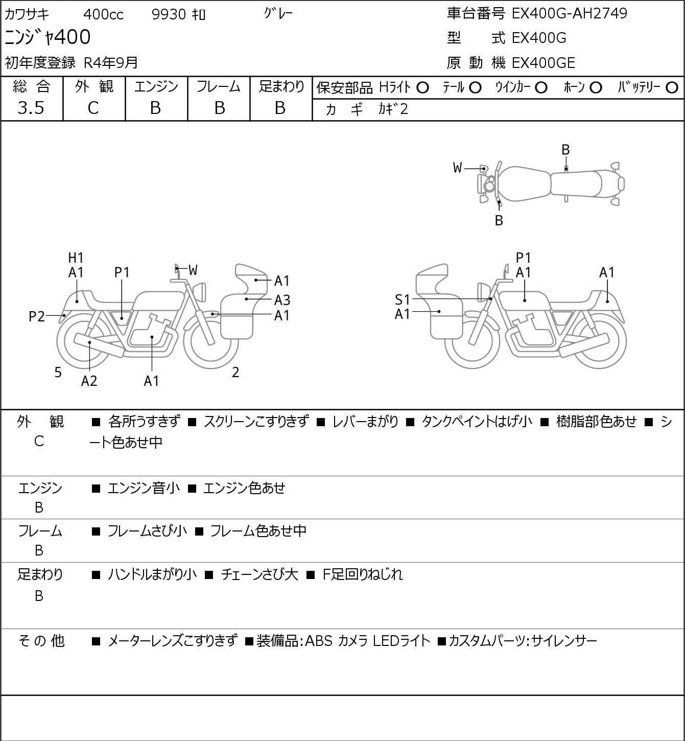 Номер рамы: EX400G-AH2749