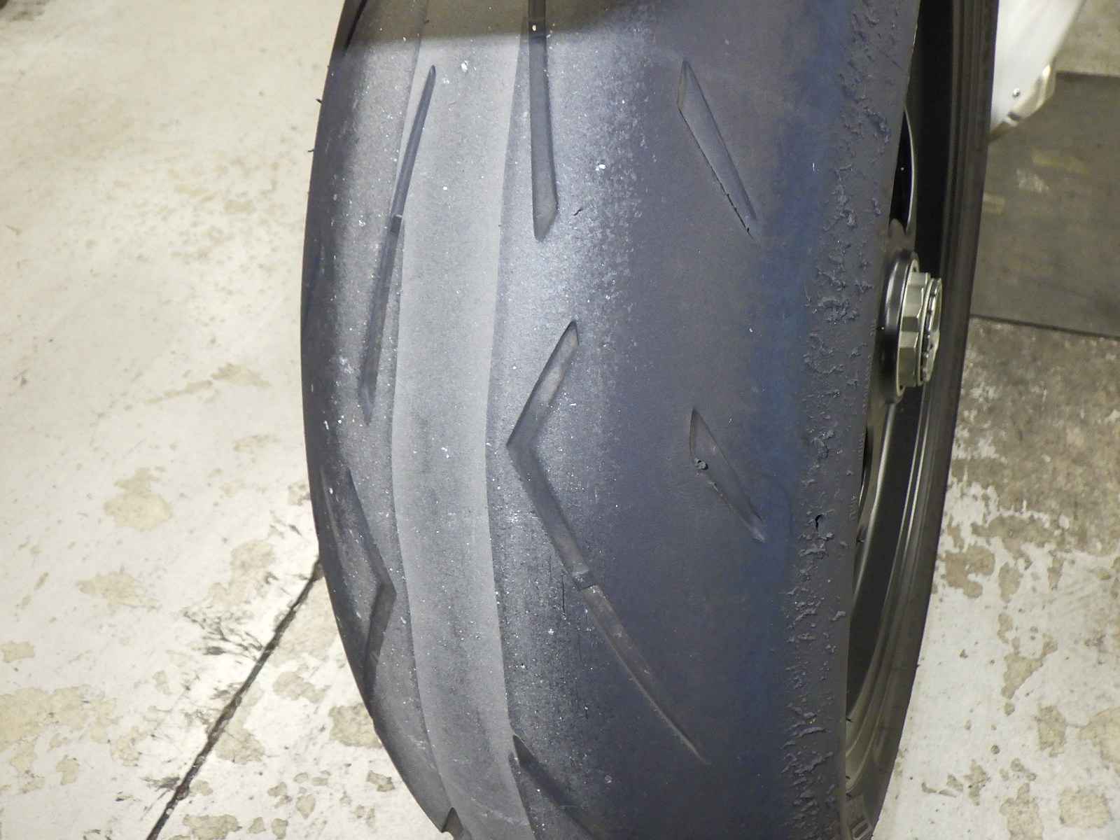 Задняя покрышка: Требуется замена шины, Таять