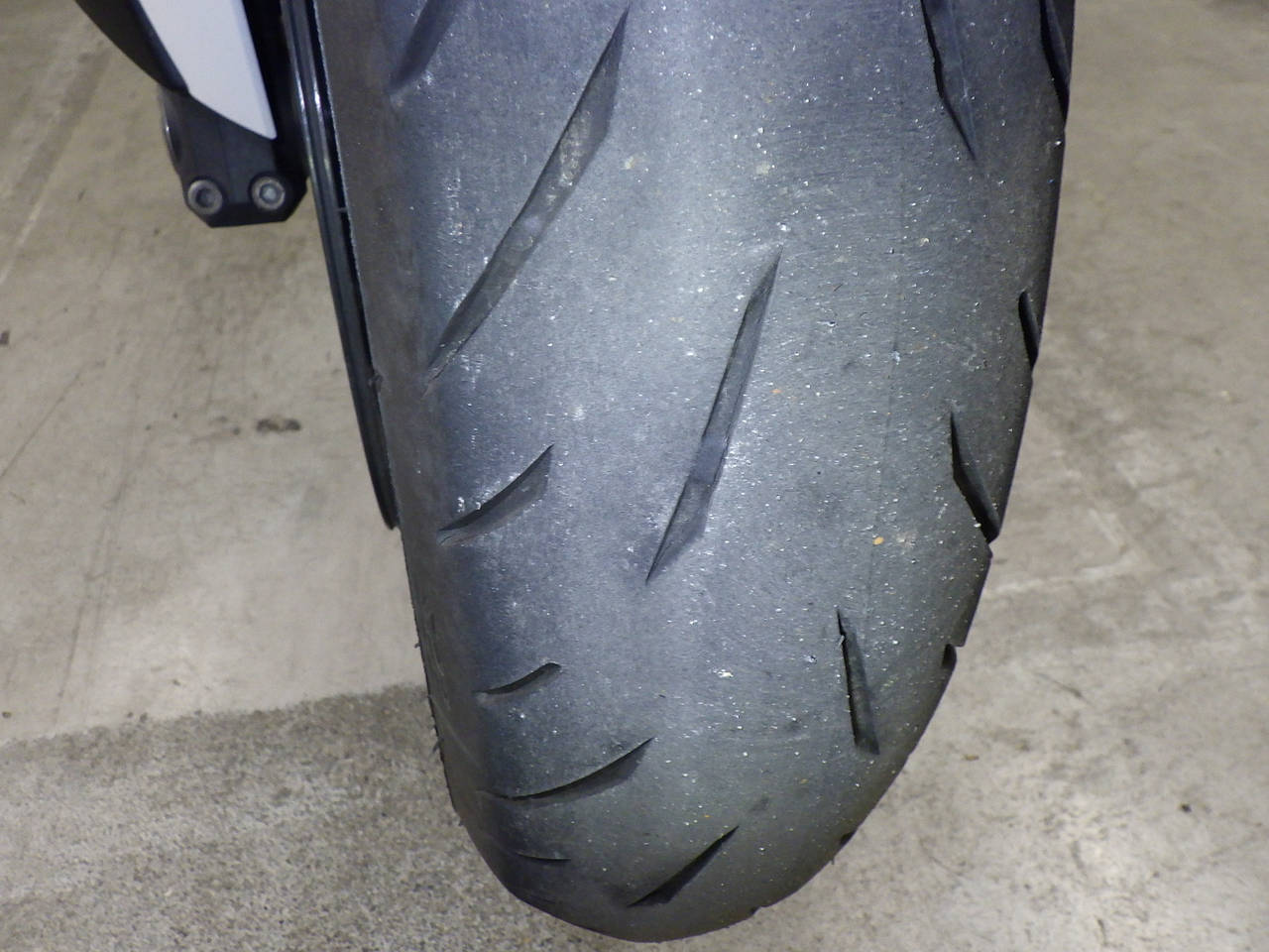 Передняя покрышка: Требуется замена изношенного шины.