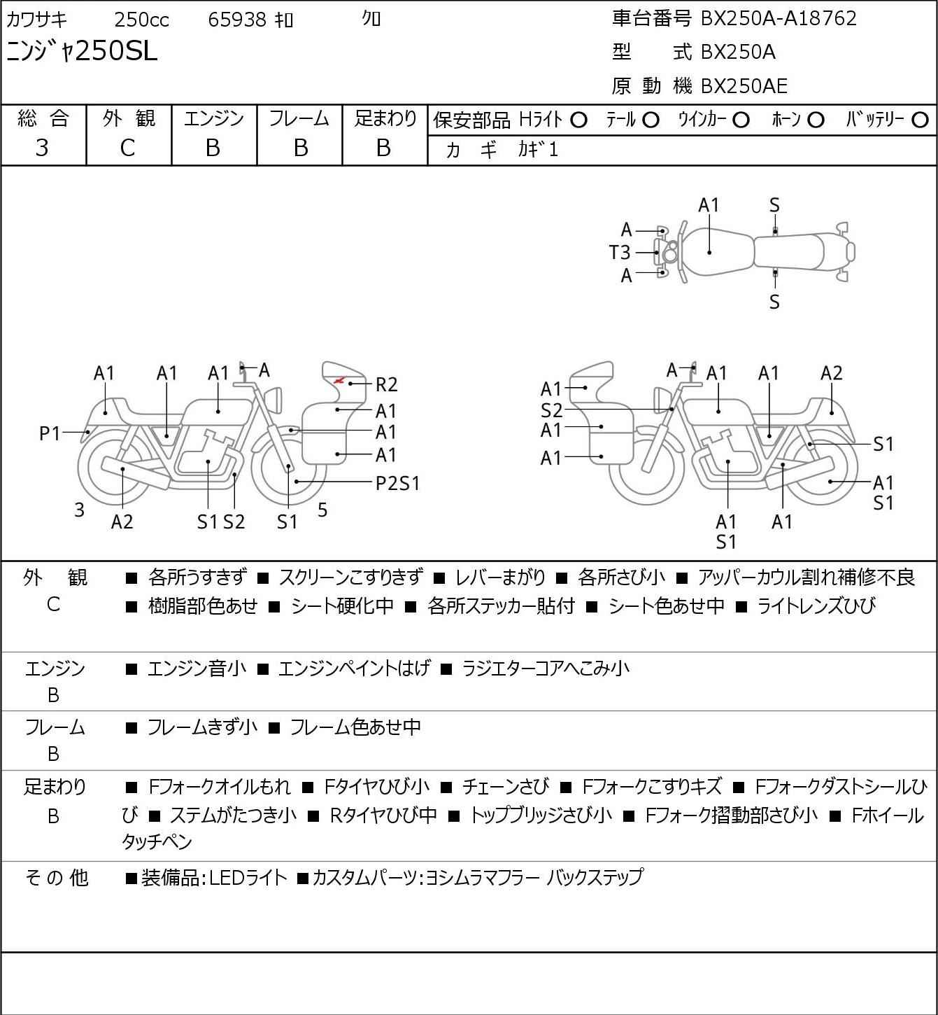 Номер рамы: BX250A-A18762