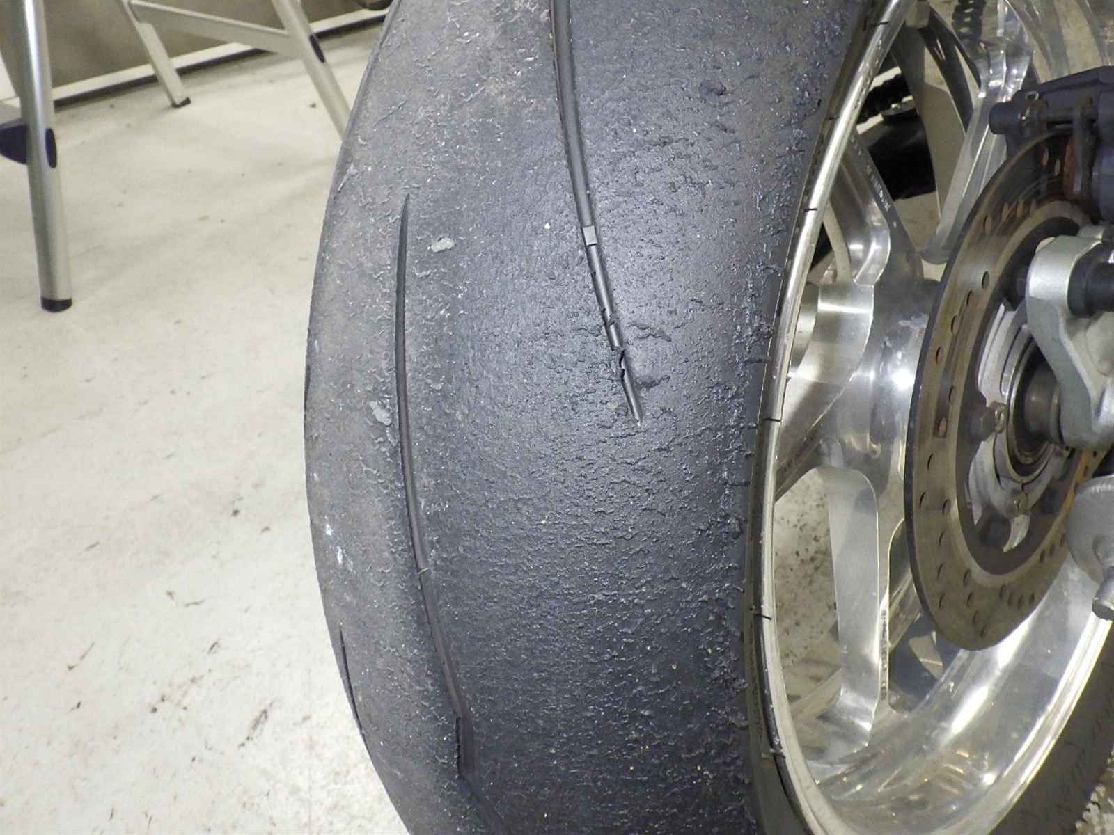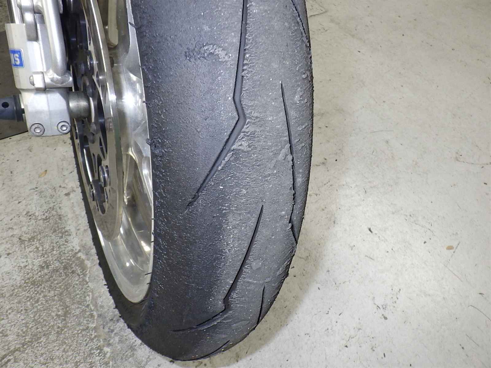 Передняя покрышка: Требуется замена шины, Таять