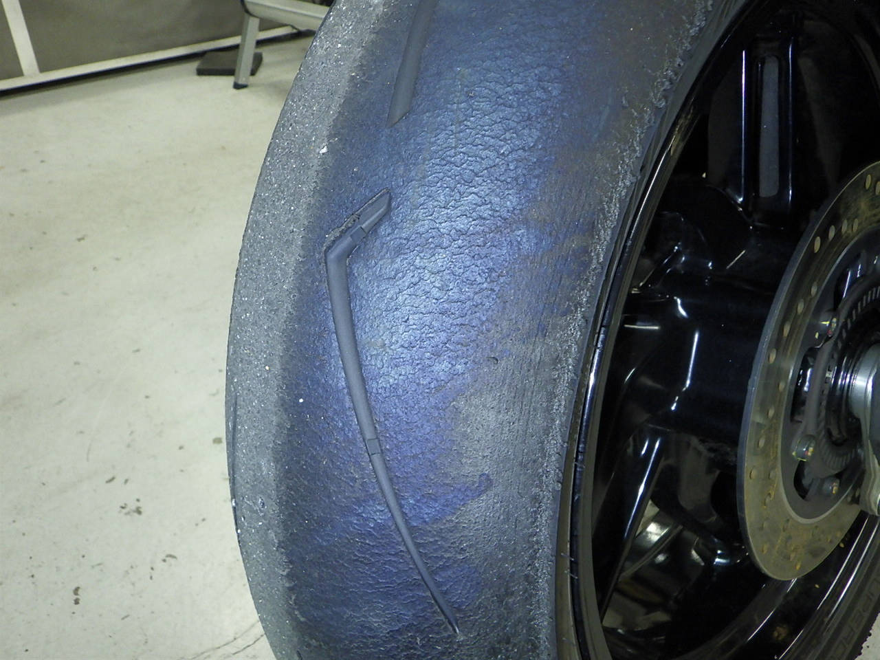 Задняя покрышка: Требуется замена шины, Таять