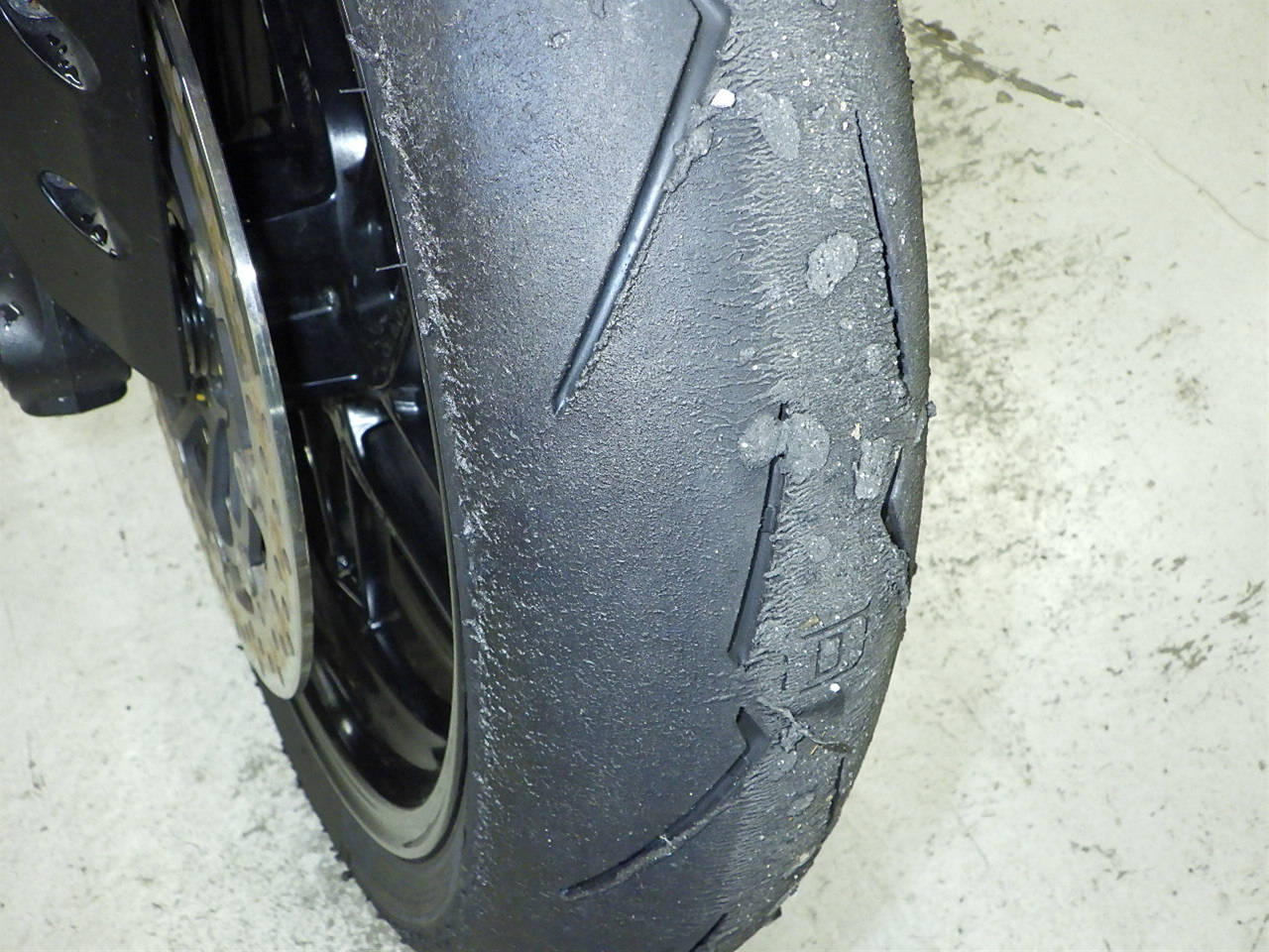 Передняя покрышка: Требуется замена шины, Таять