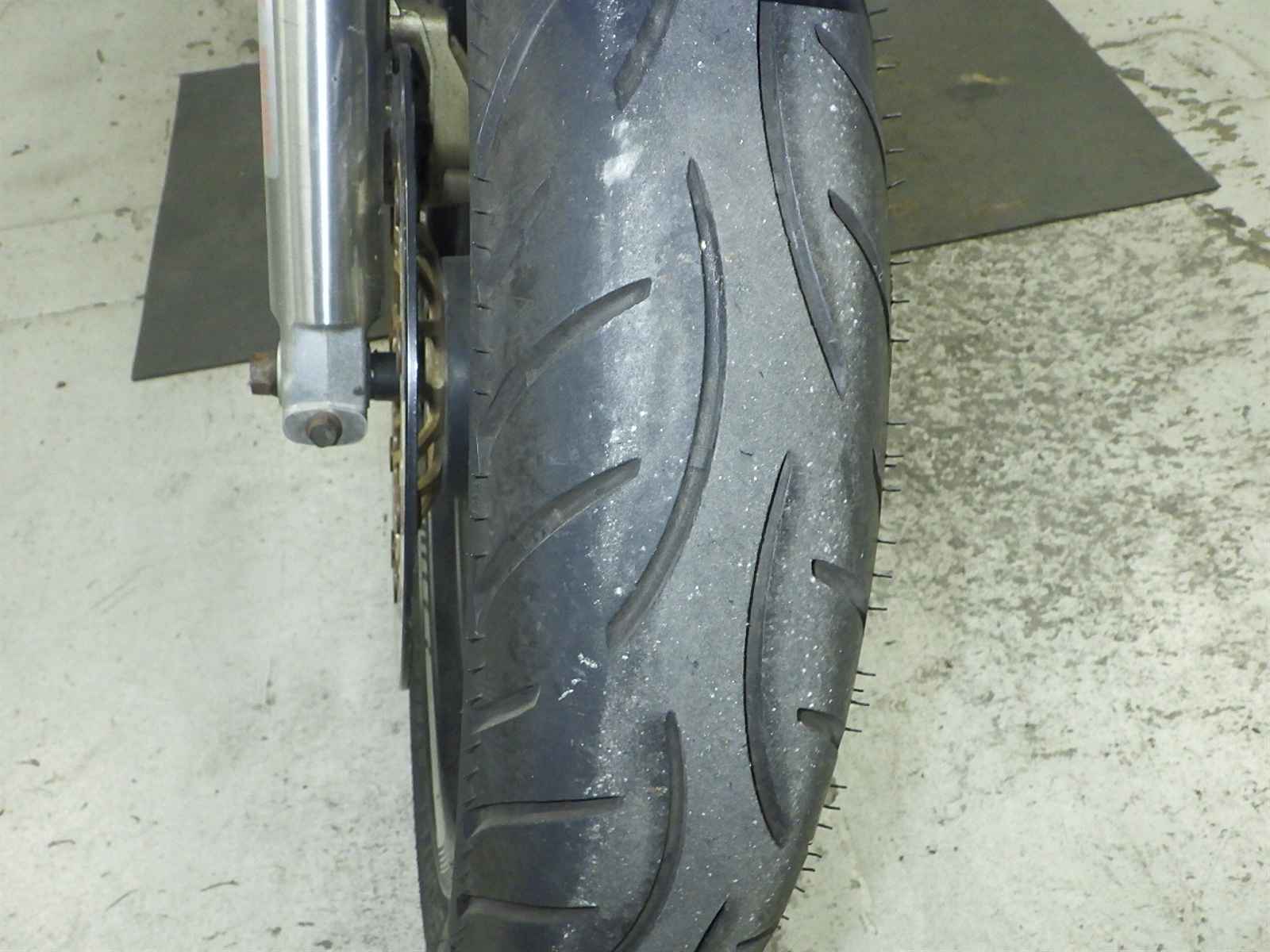 Передняя покрышка: Трещина на шине, требуется замена.