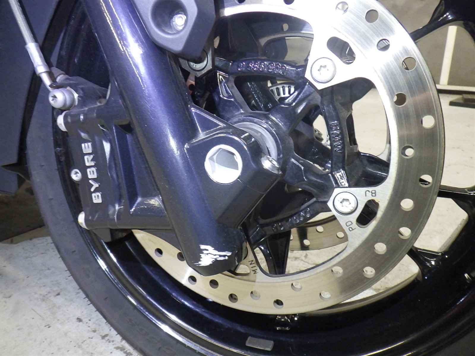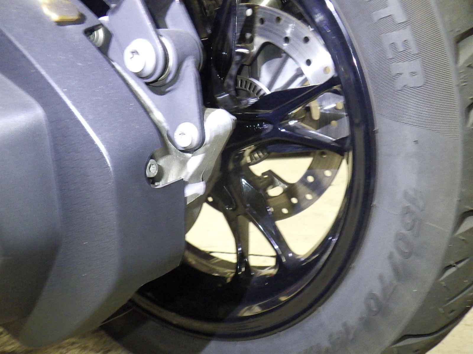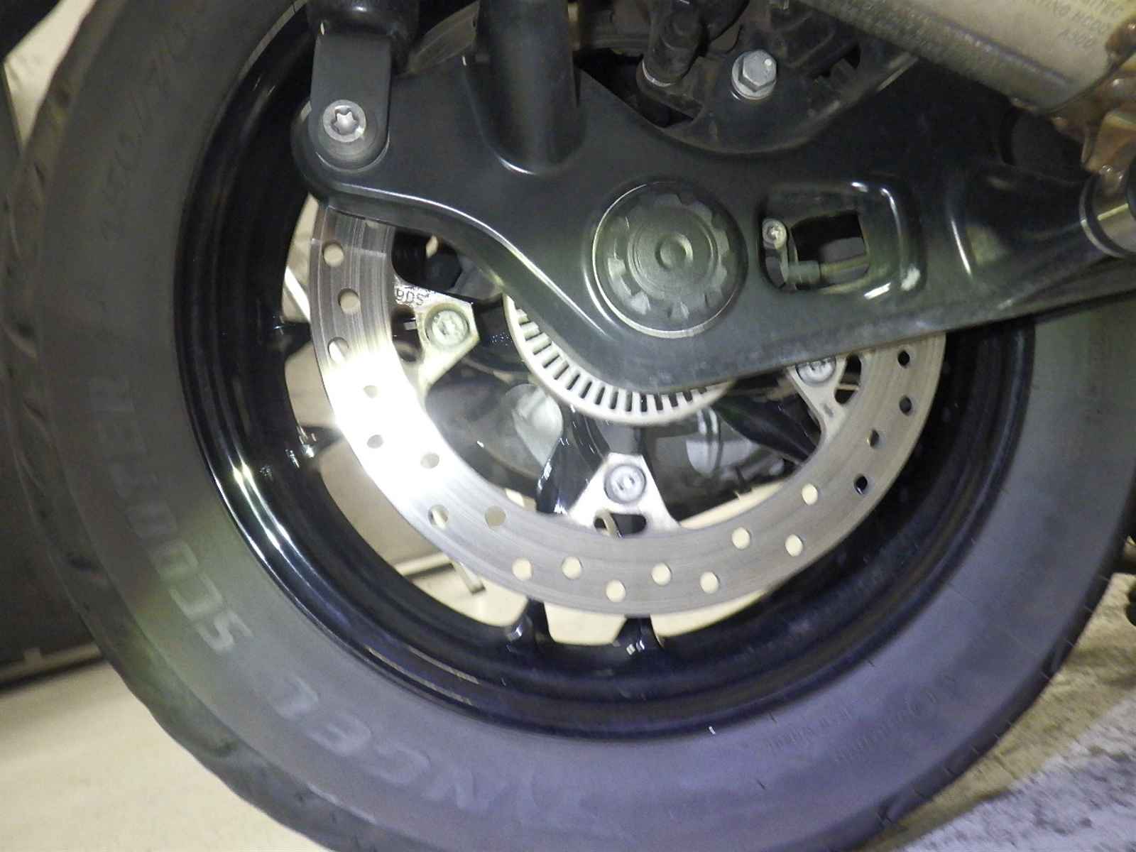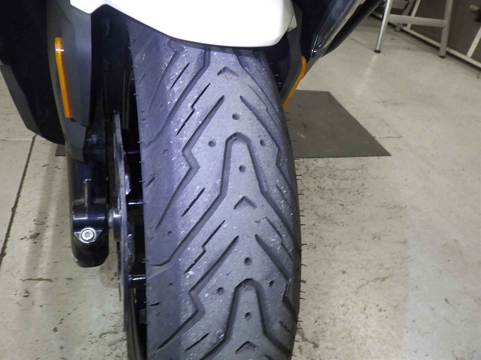 Передняя покрышка: Снижение давления в шине, Трещина требует замены.