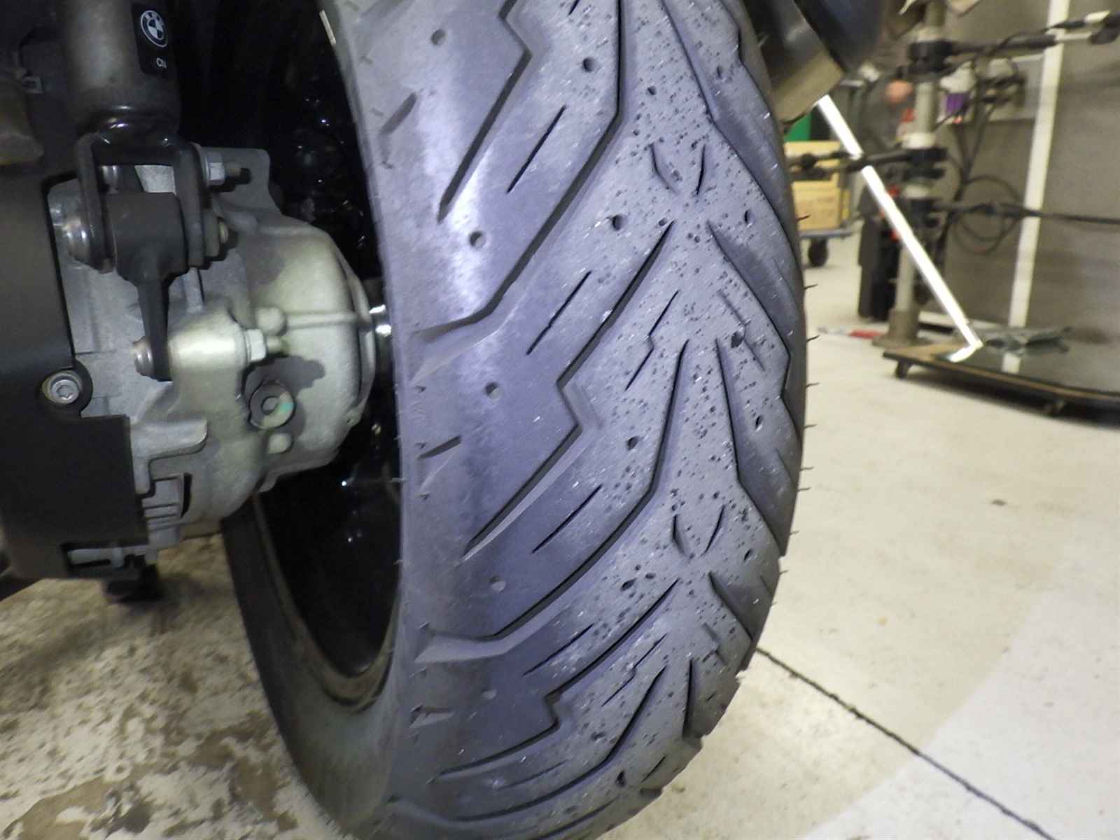 Задняя покрышка: Трещина на шине, требуется замена.