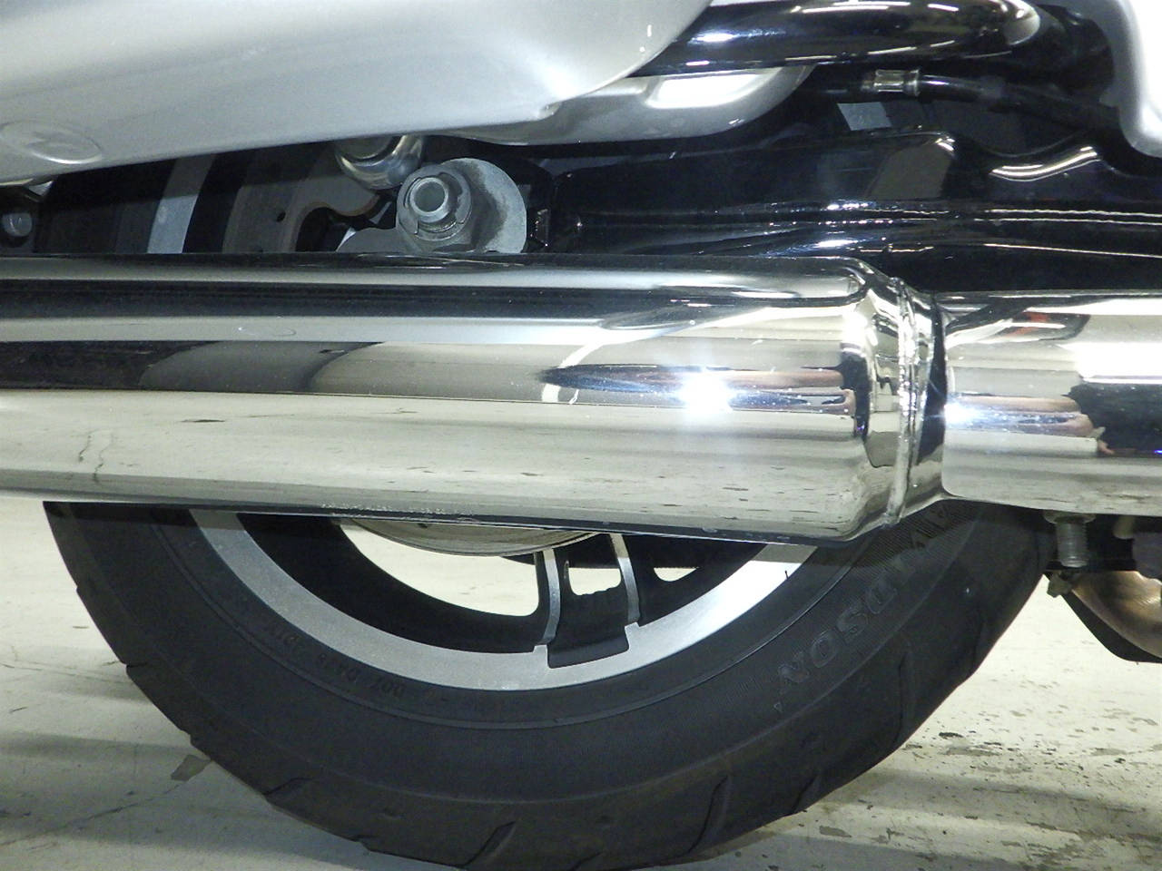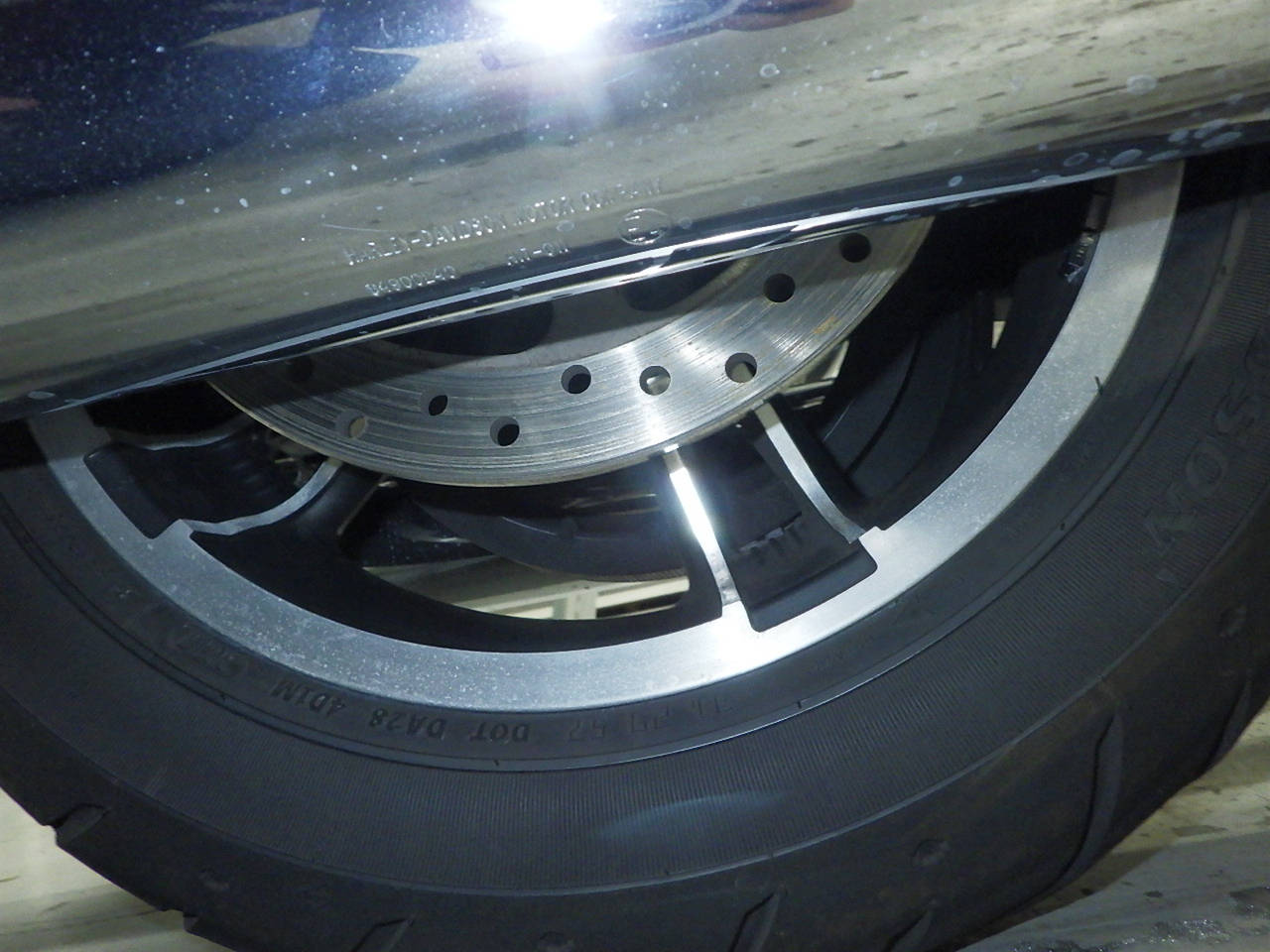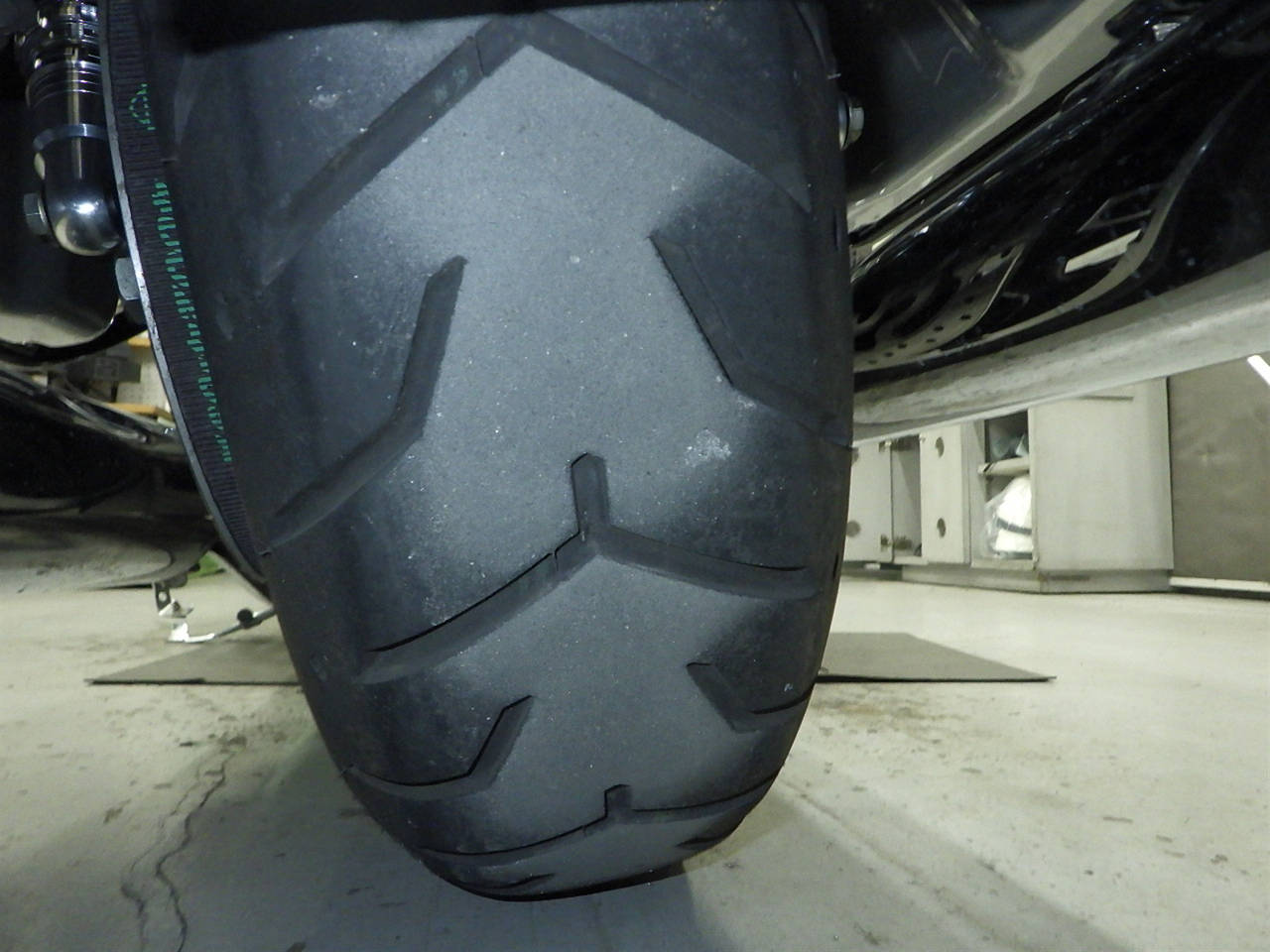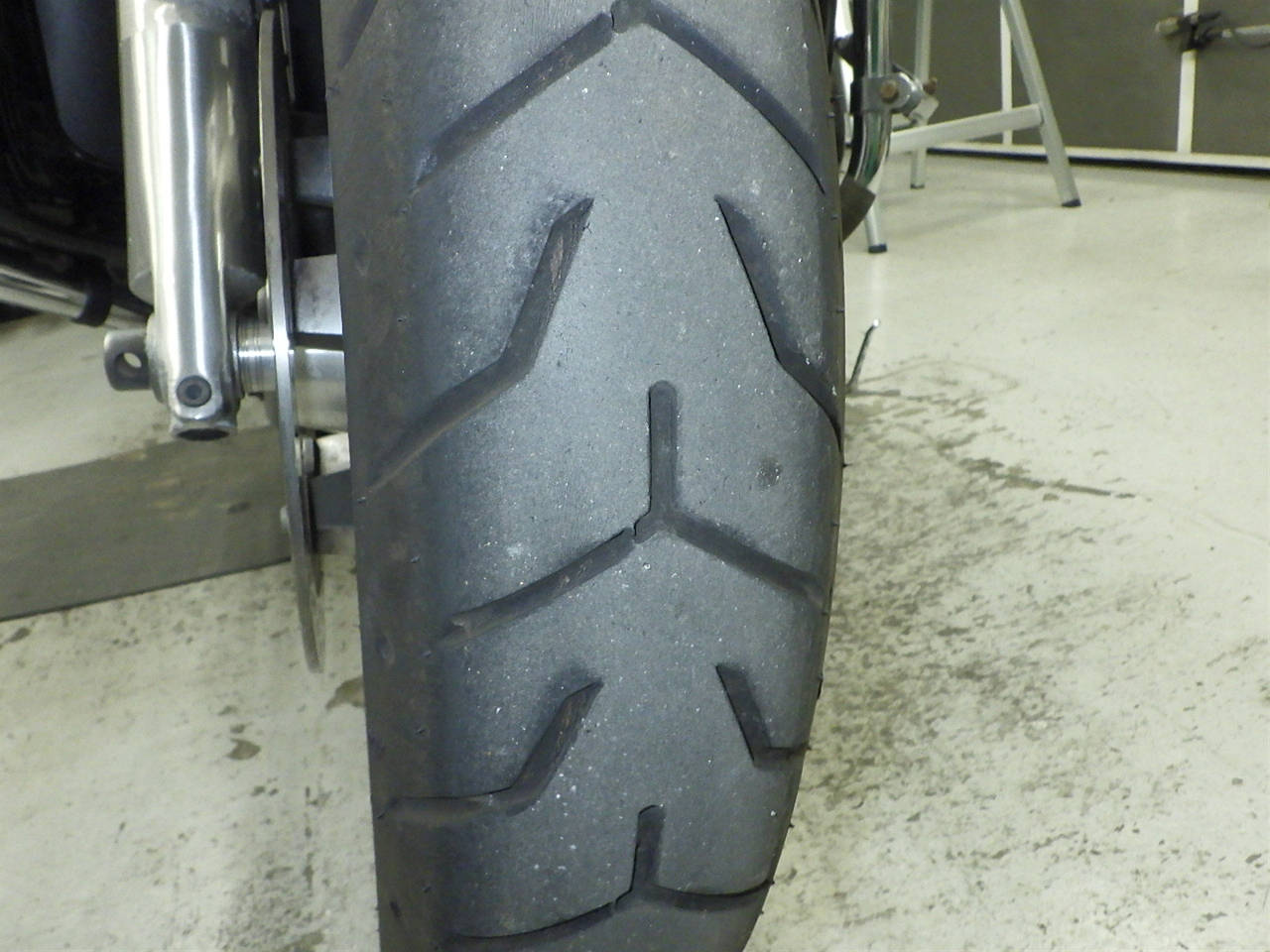Передняя покрышка: Трещина на шине, требуется замена.