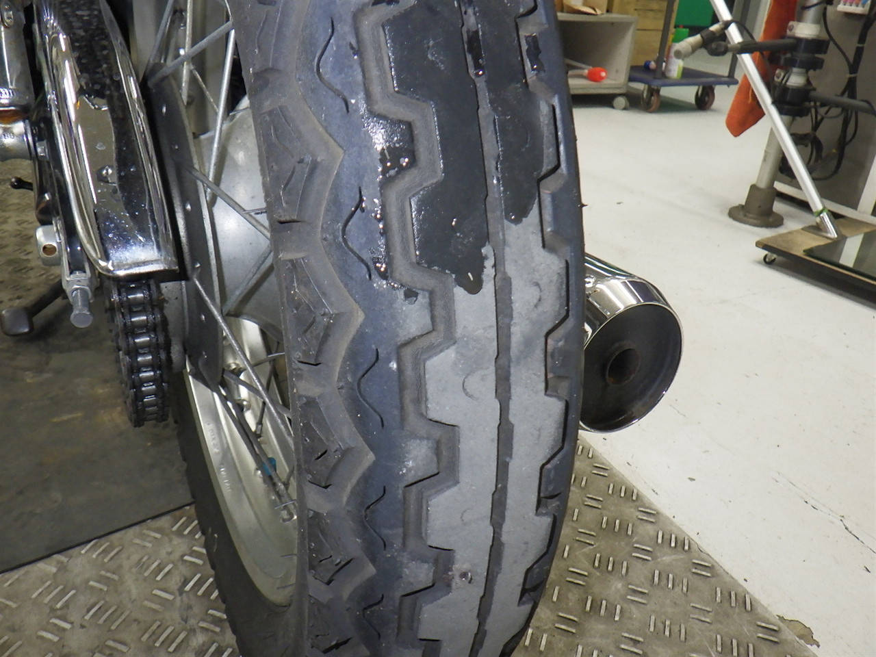 Задняя покрышка: Снижение давления в шине, Трещина требует замены.