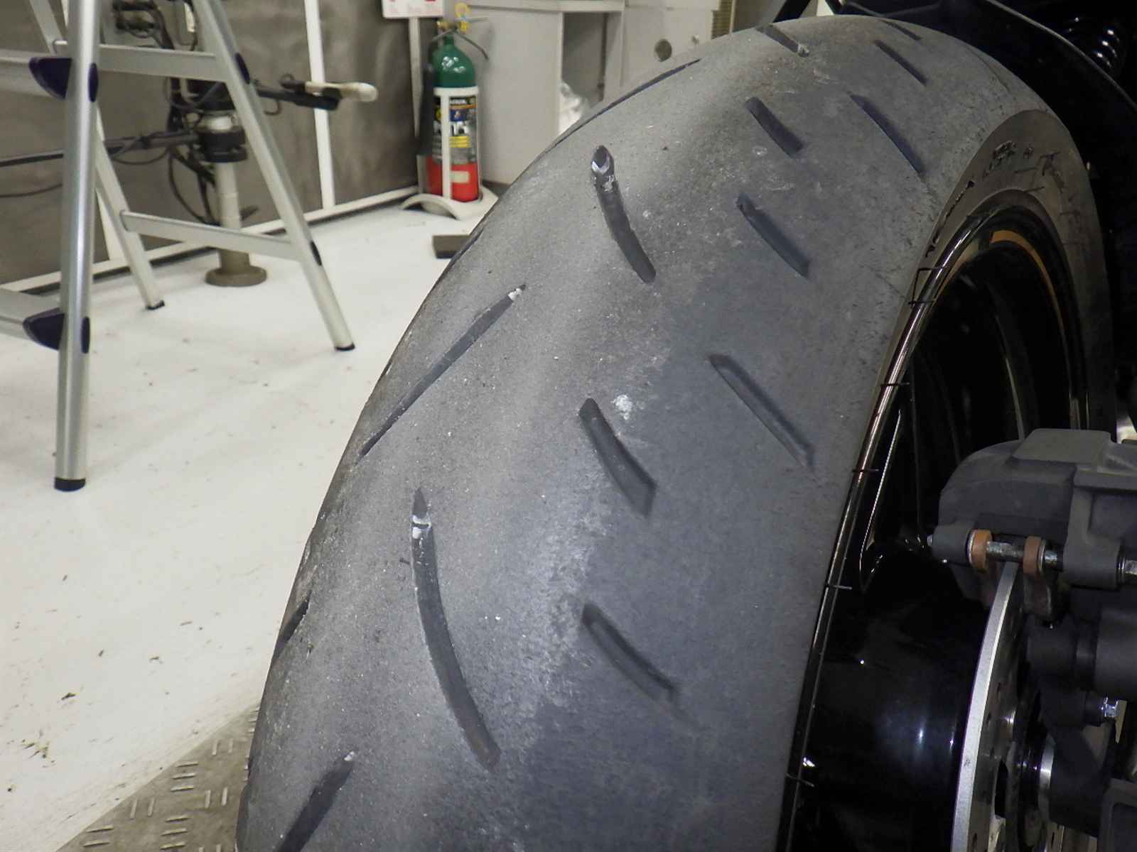 Задняя покрышка: Снижение давления в шине, Таять