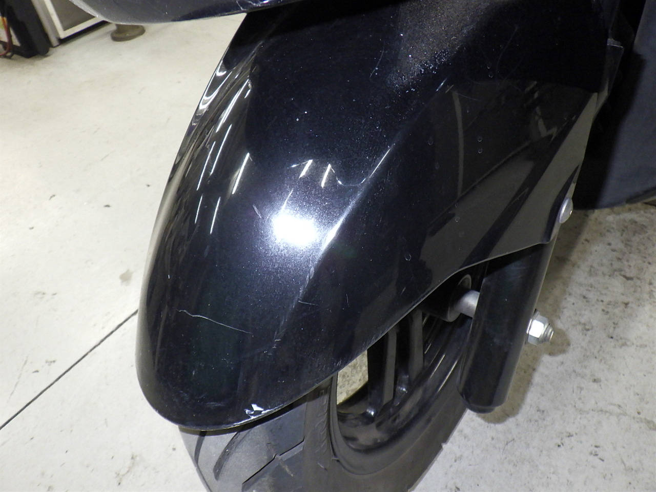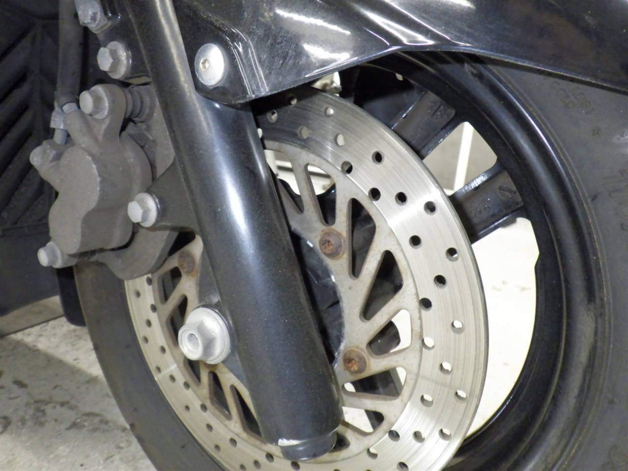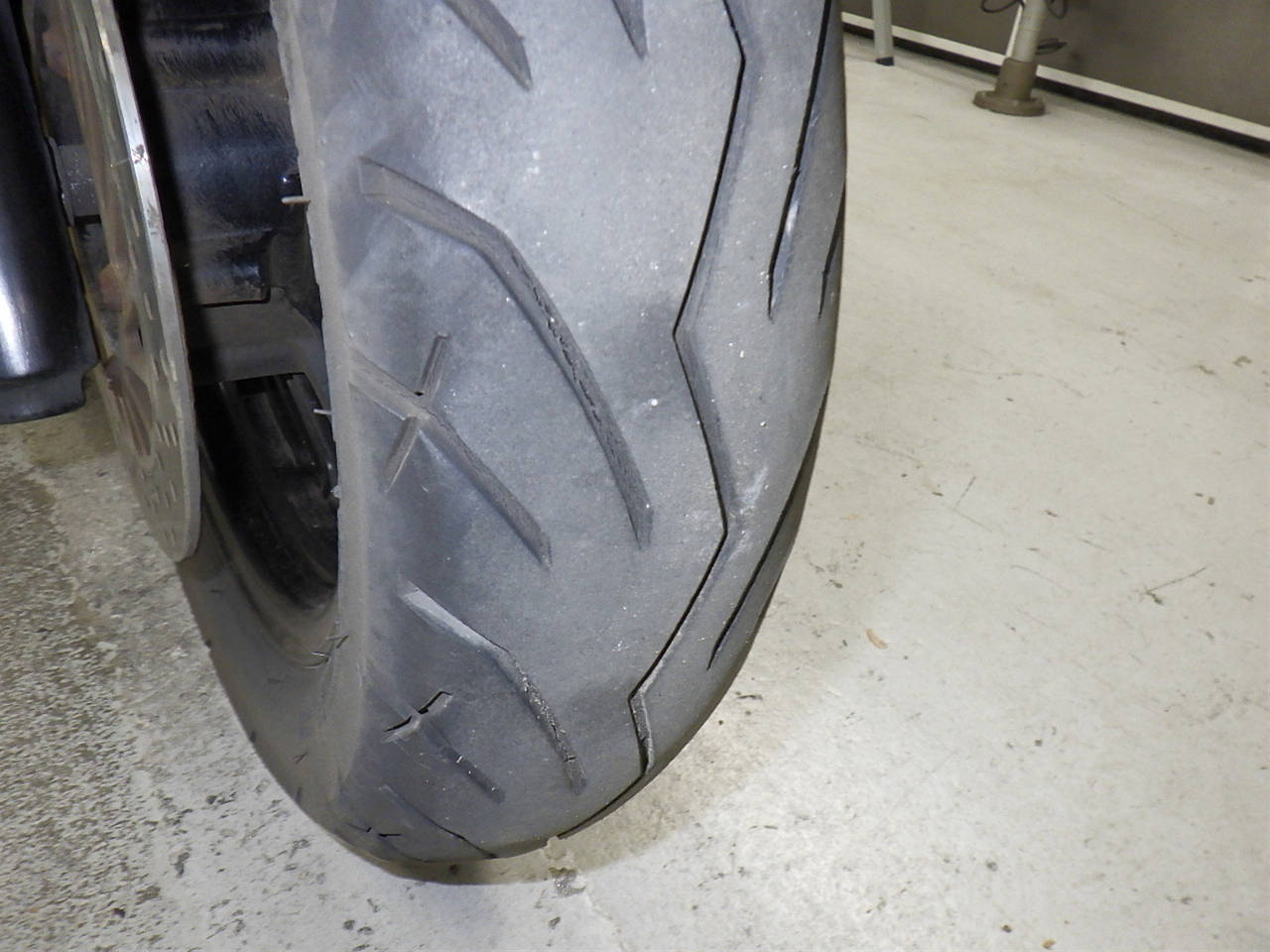 Передняя покрышка: Трещина на шине, требуется замена.