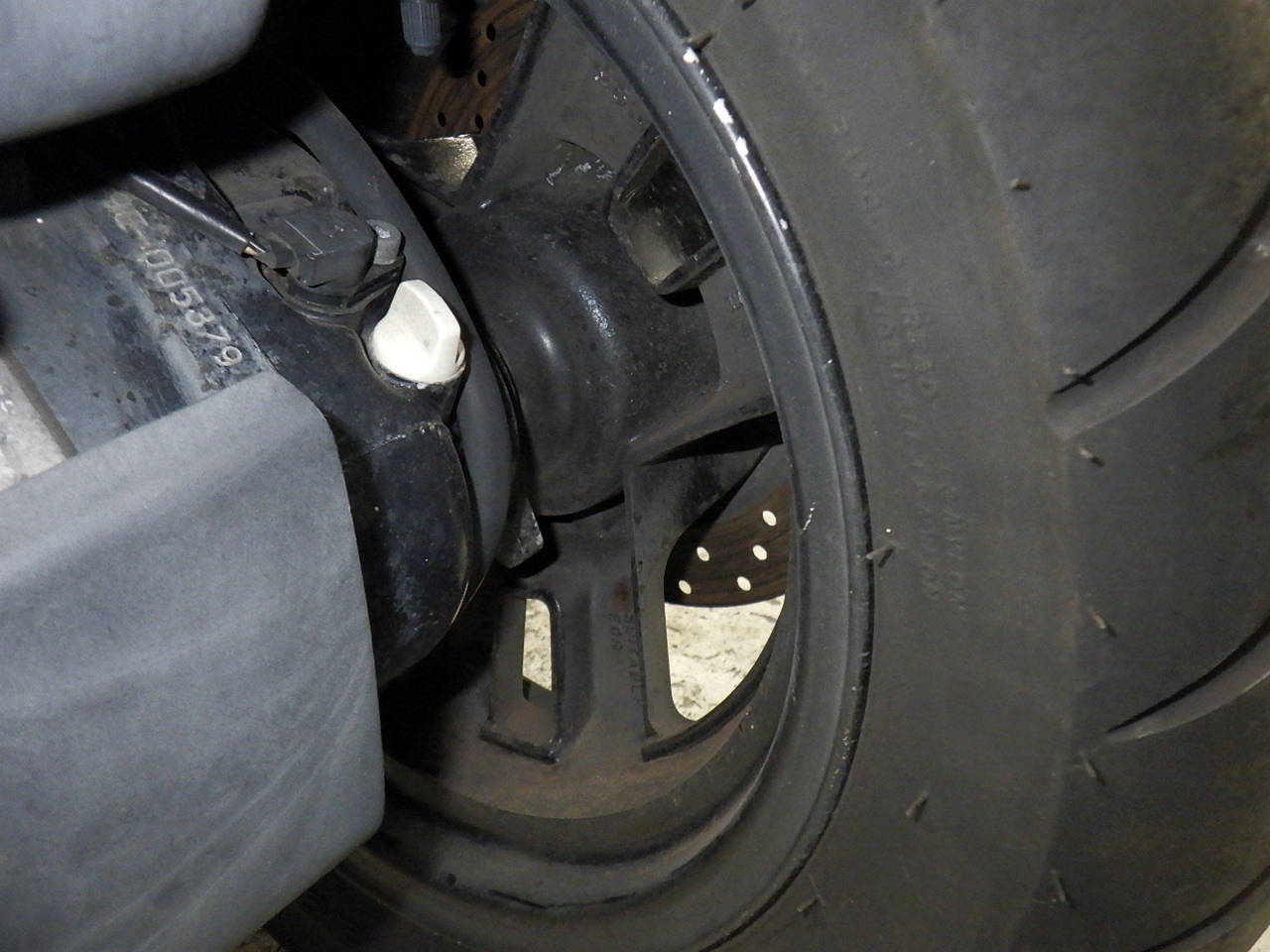 Задняя покрышка: Снижение давления в шине, Трещина требует замены.