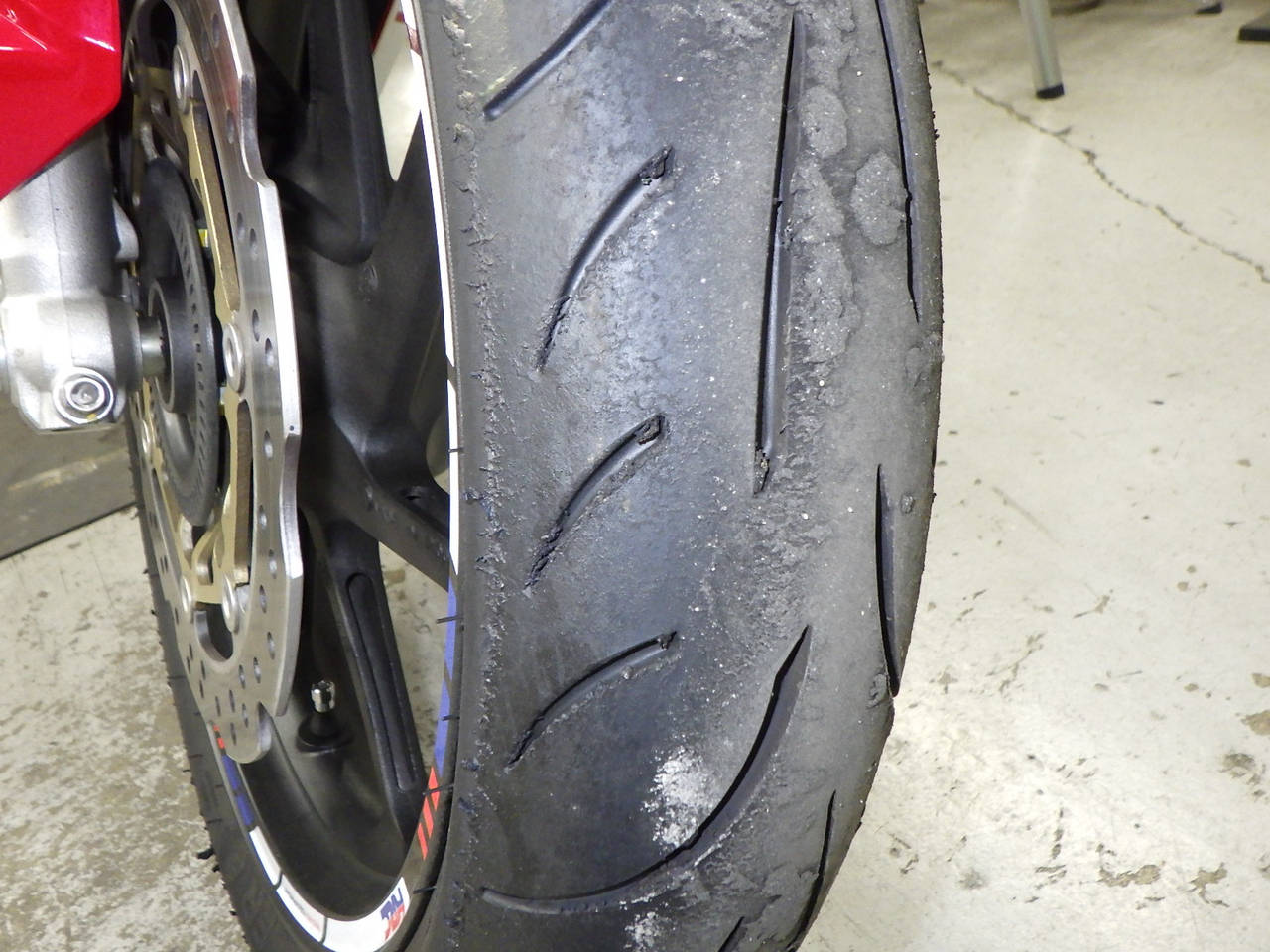 Передняя покрышка: Требуется замена шины, Таять