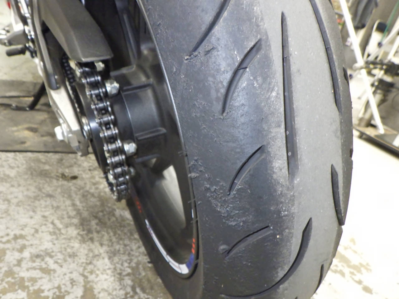 Задняя покрышка: Требуется замена шины, Таять