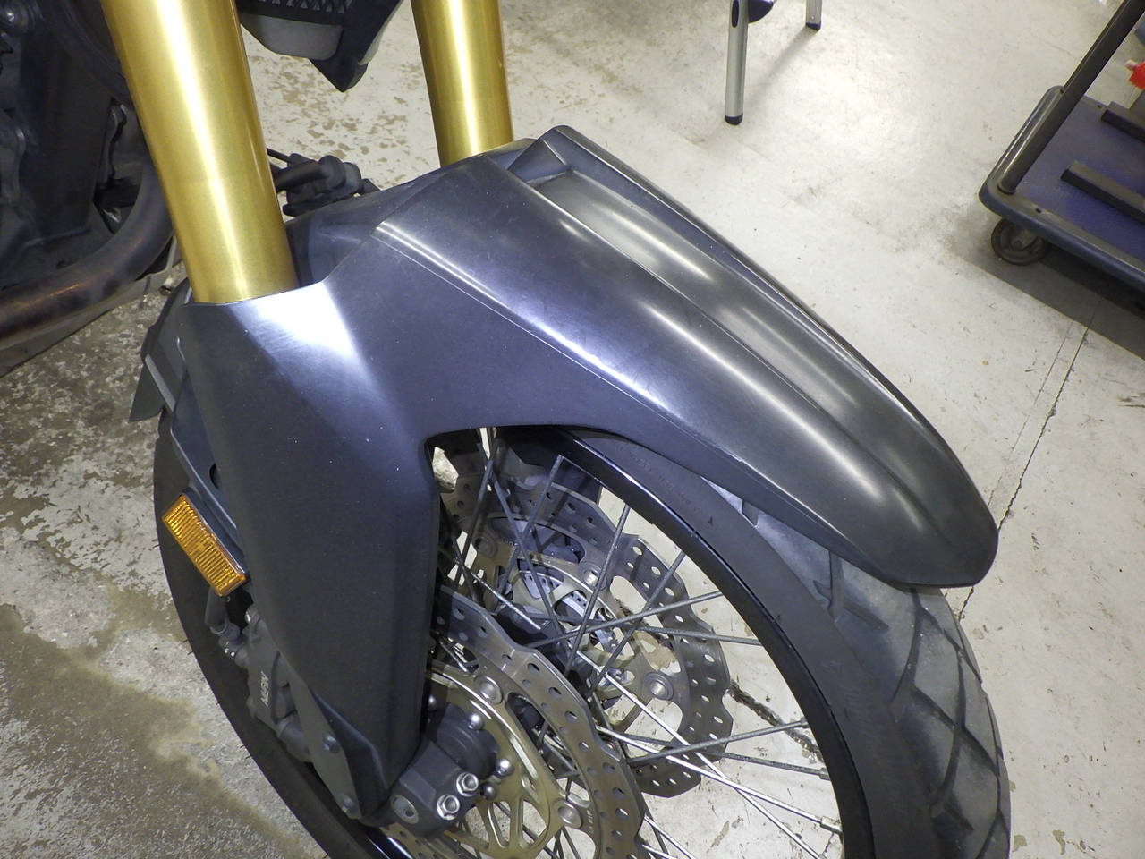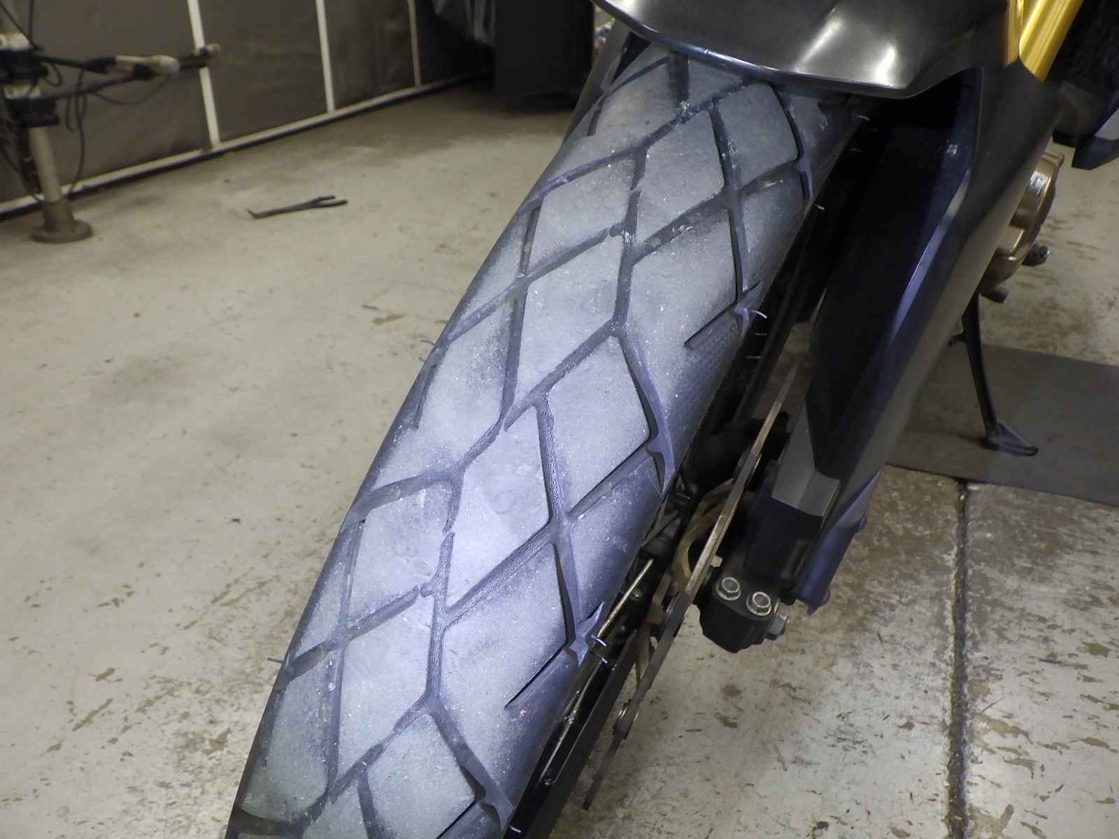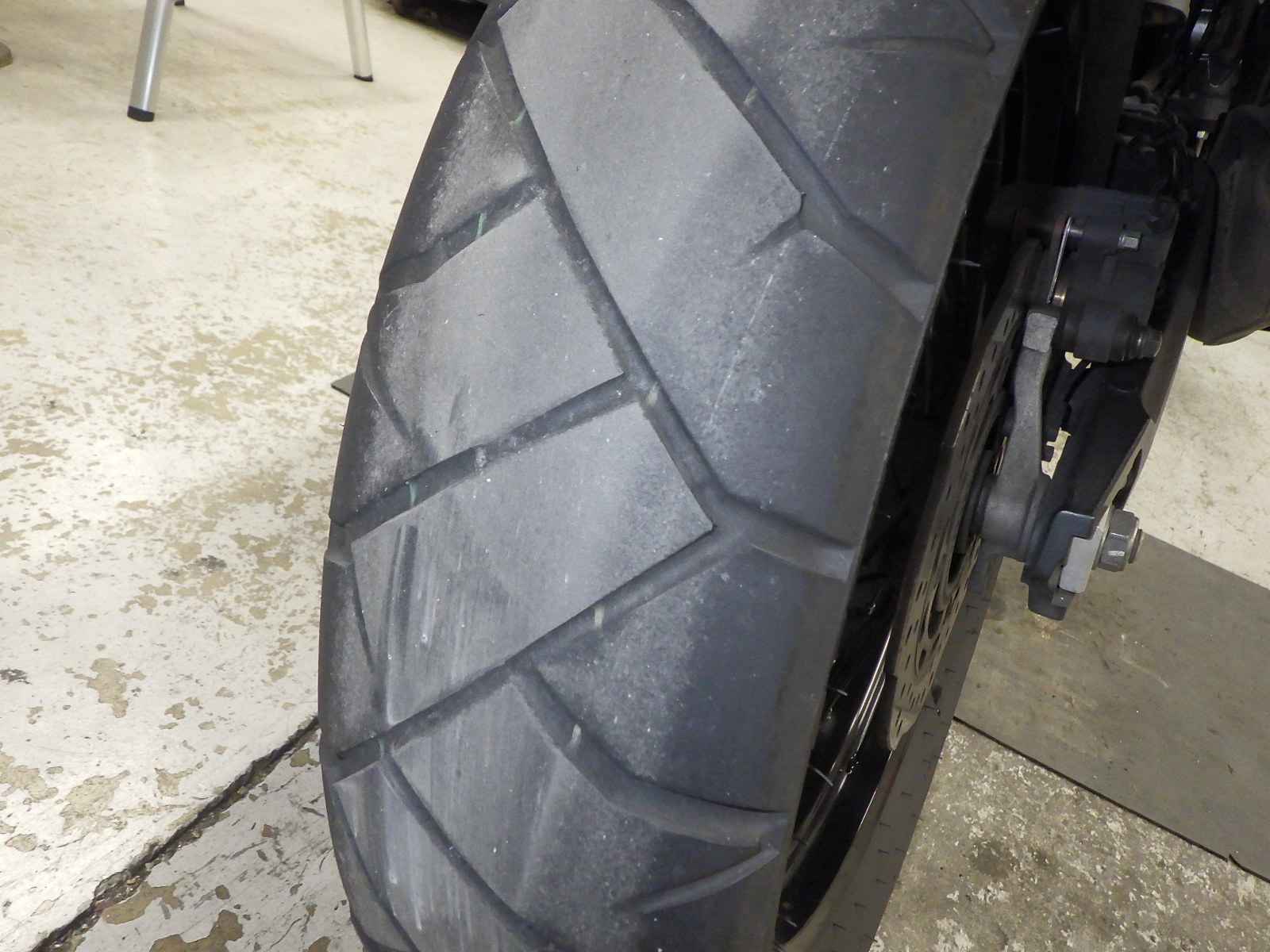 Передняя покрышка: Снижение давления в шине, Трещина требует замены.