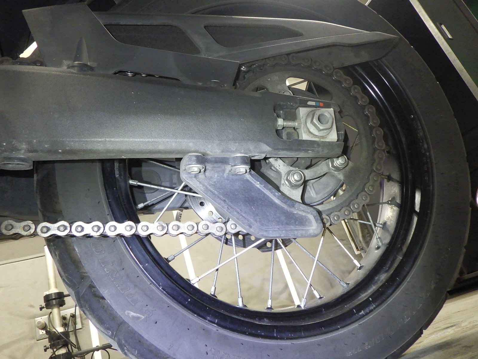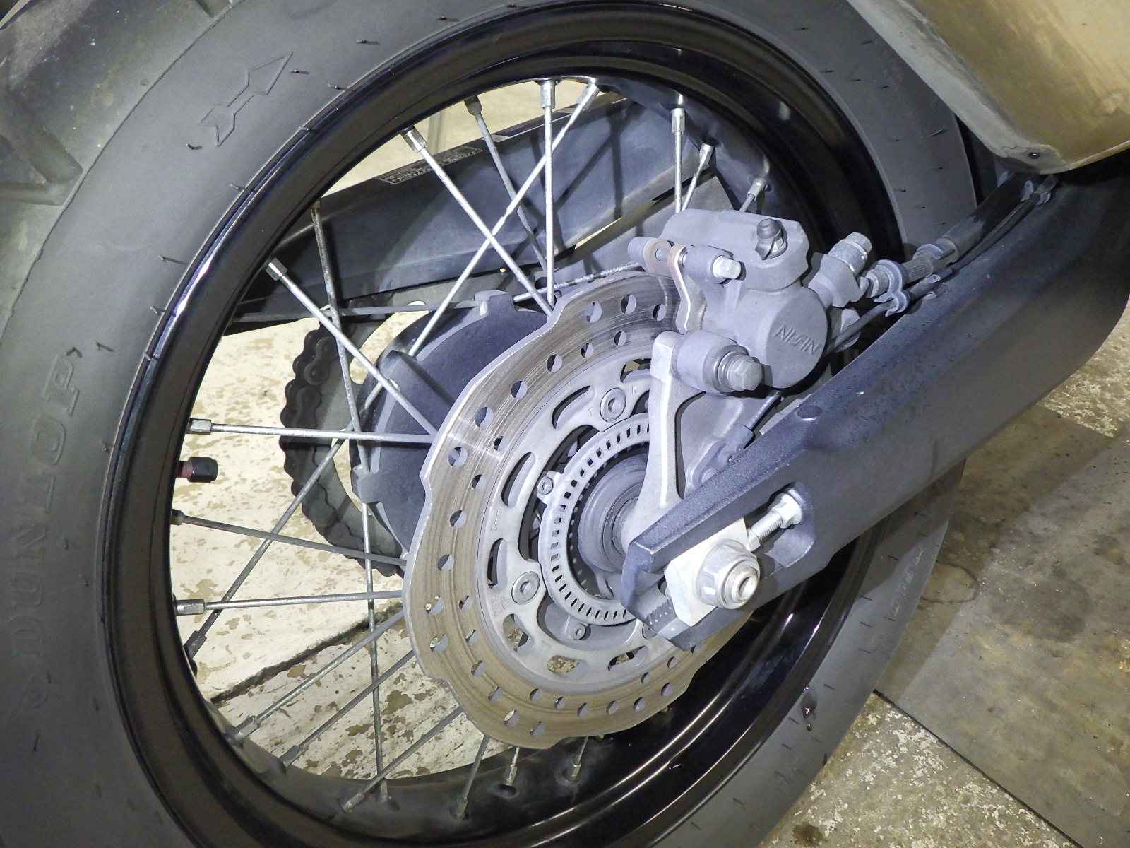 Задняя покрышка: Снижение давления в шине, Трещина требует замены.