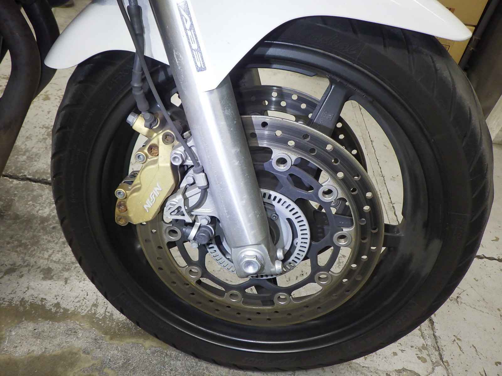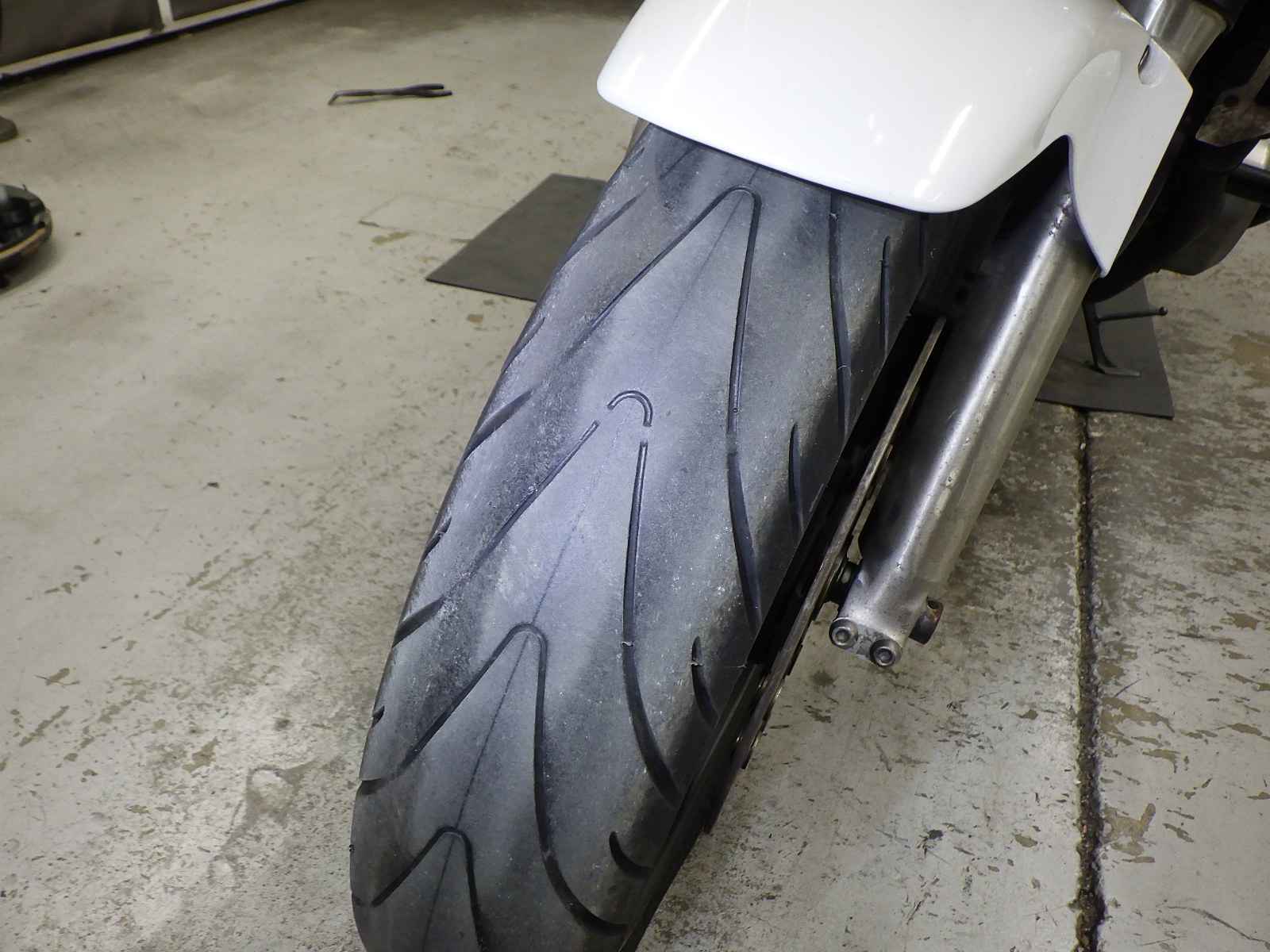 Передняя покрышка: Снижение давления в шине, Трещина требует замены.