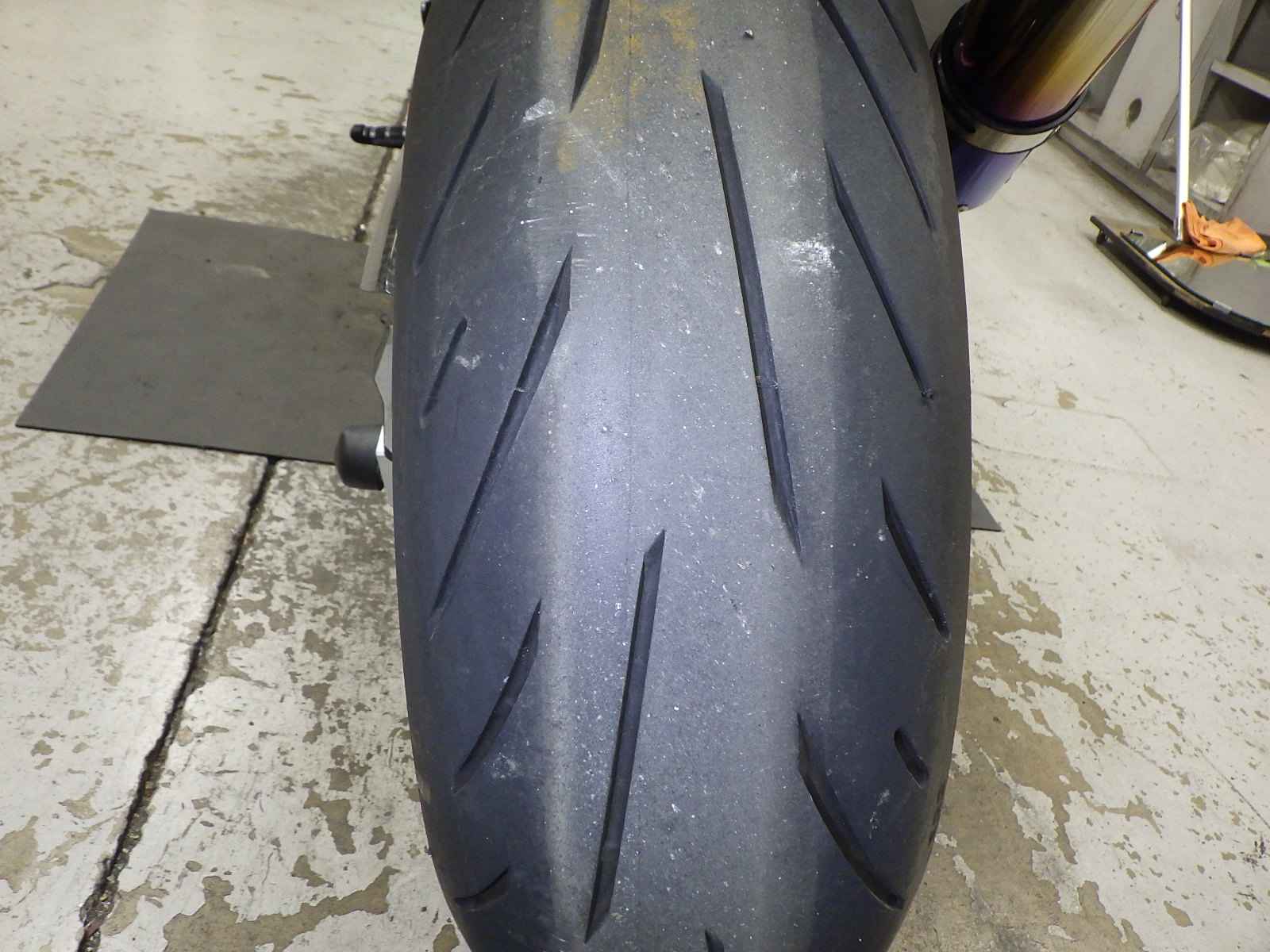 Передняя покрышка: Требуется замена изношенного шины.