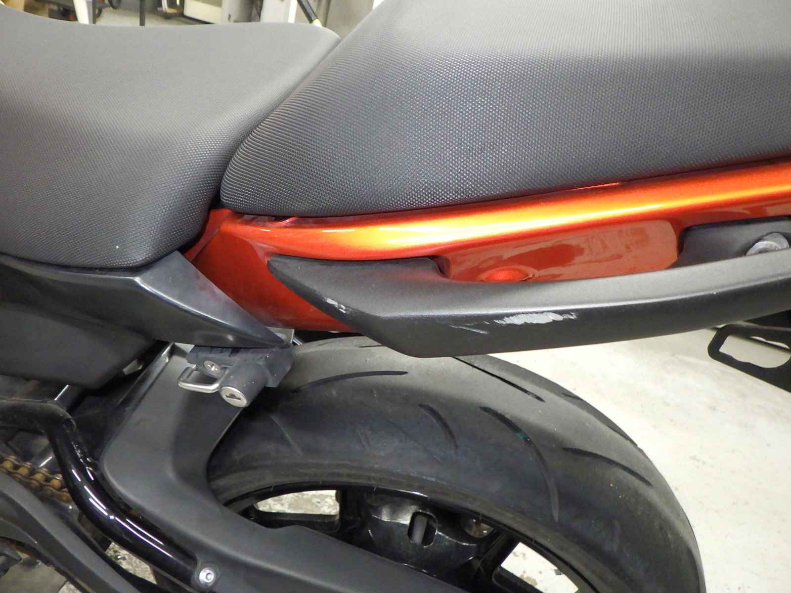 Задняя покрышка: Снижение давления в шине, Трещина требует замены.