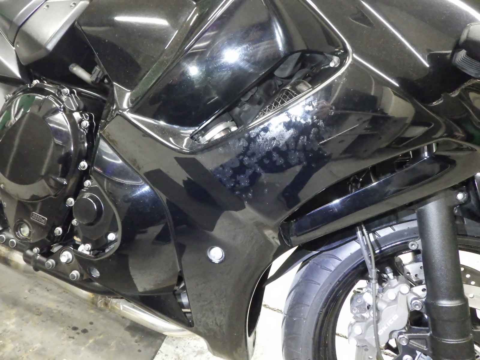 Переднее крыло: Краска на переднем крыле мотоцикла стерлась, есть недочеты.