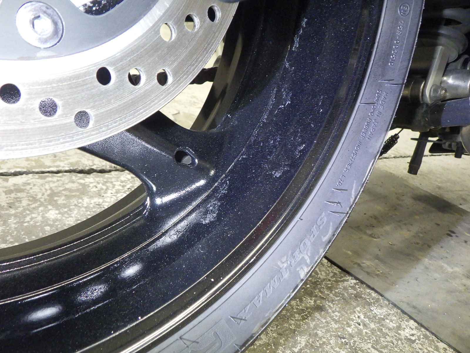 Заднее колесо: Окисление на колесе Уровень 3, Вся краска нанесена неравномерно.