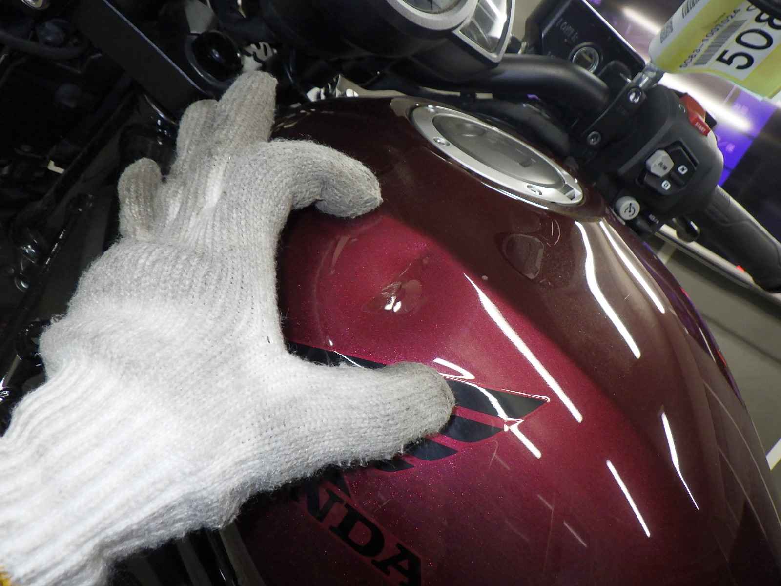 Бензобак: Вмятина на баке Уровень 3, Недостаток, Частичная покраска