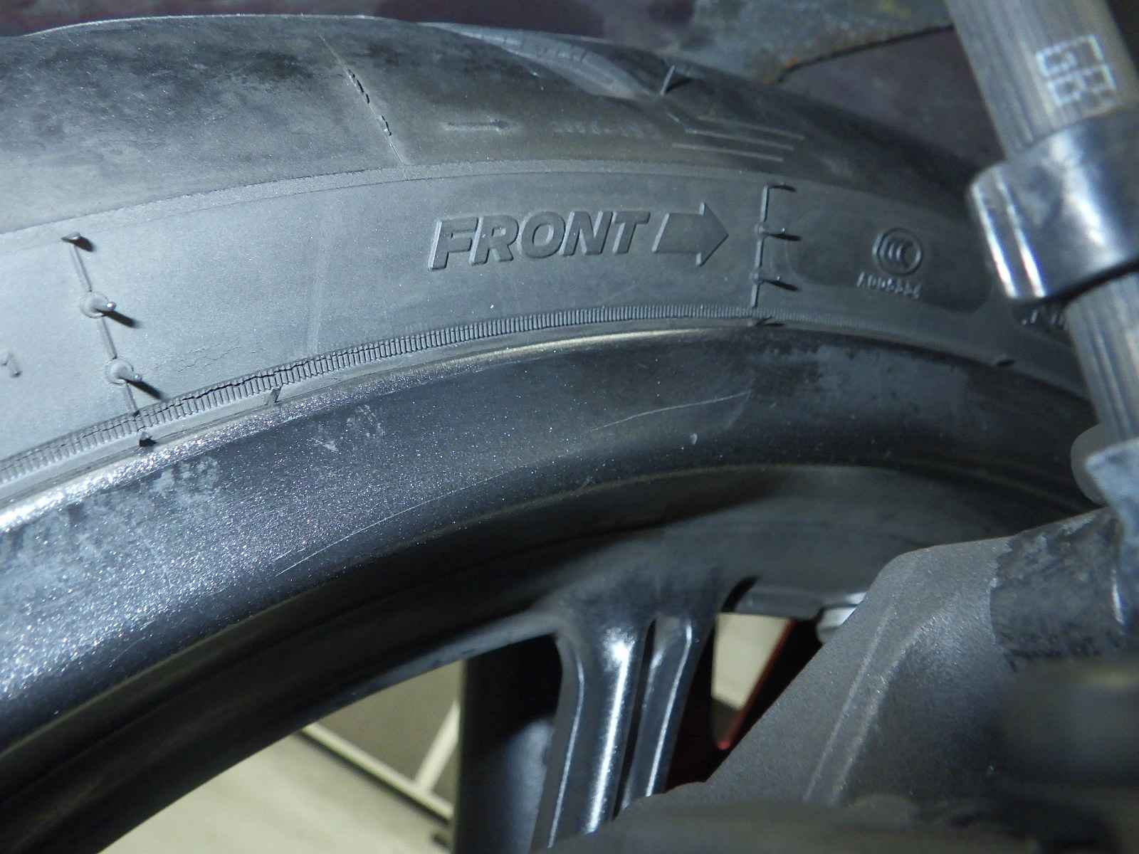 Передняя покрышка: Требуется замена изношенного шины.