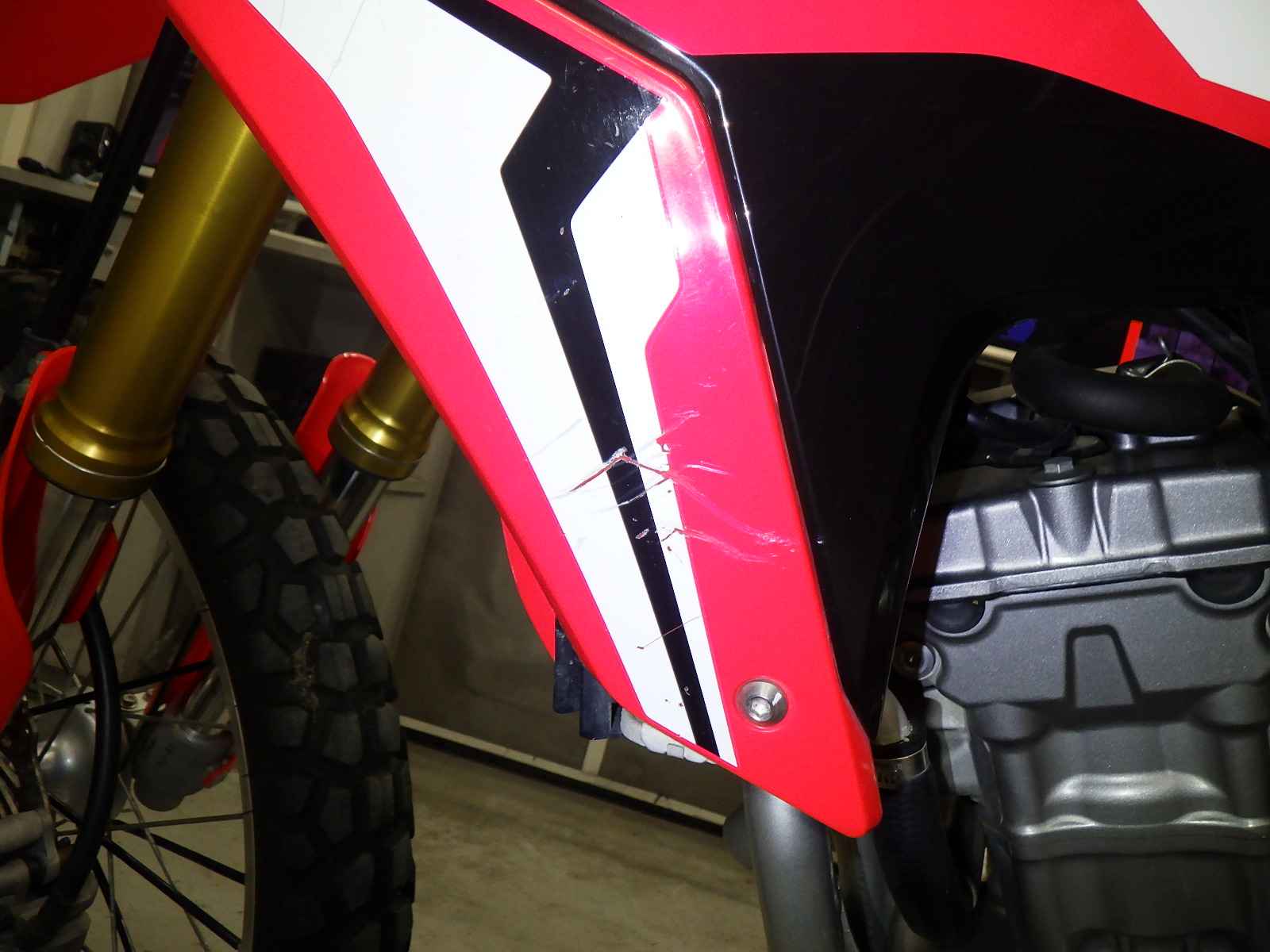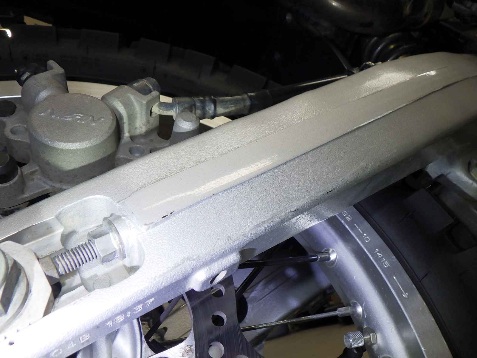 Крышка картера: Покрытие мотоцикла облезло, образовав "плешину" в краске, Незначительно