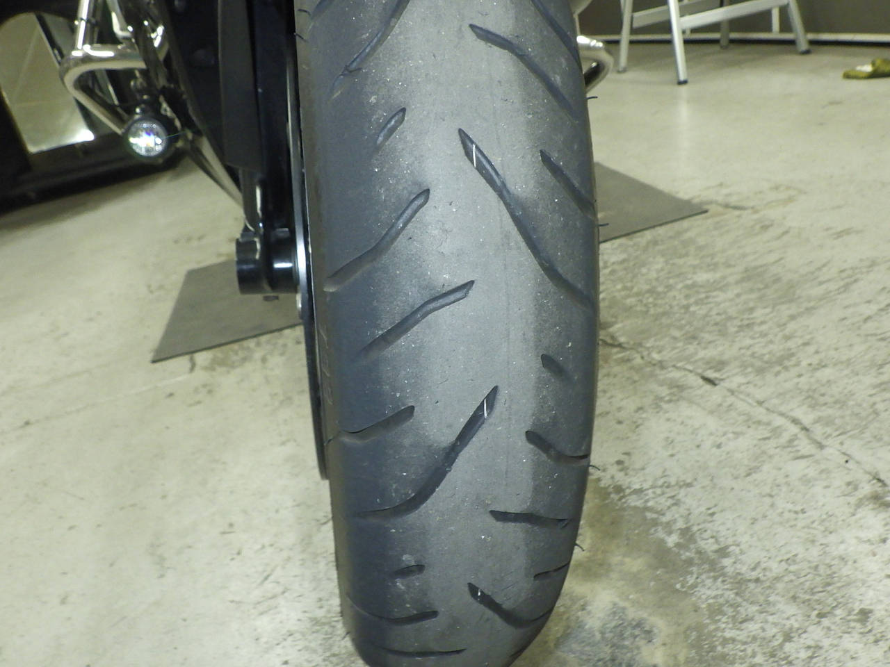 Передняя покрышка: Требуется замена изношенного шины.