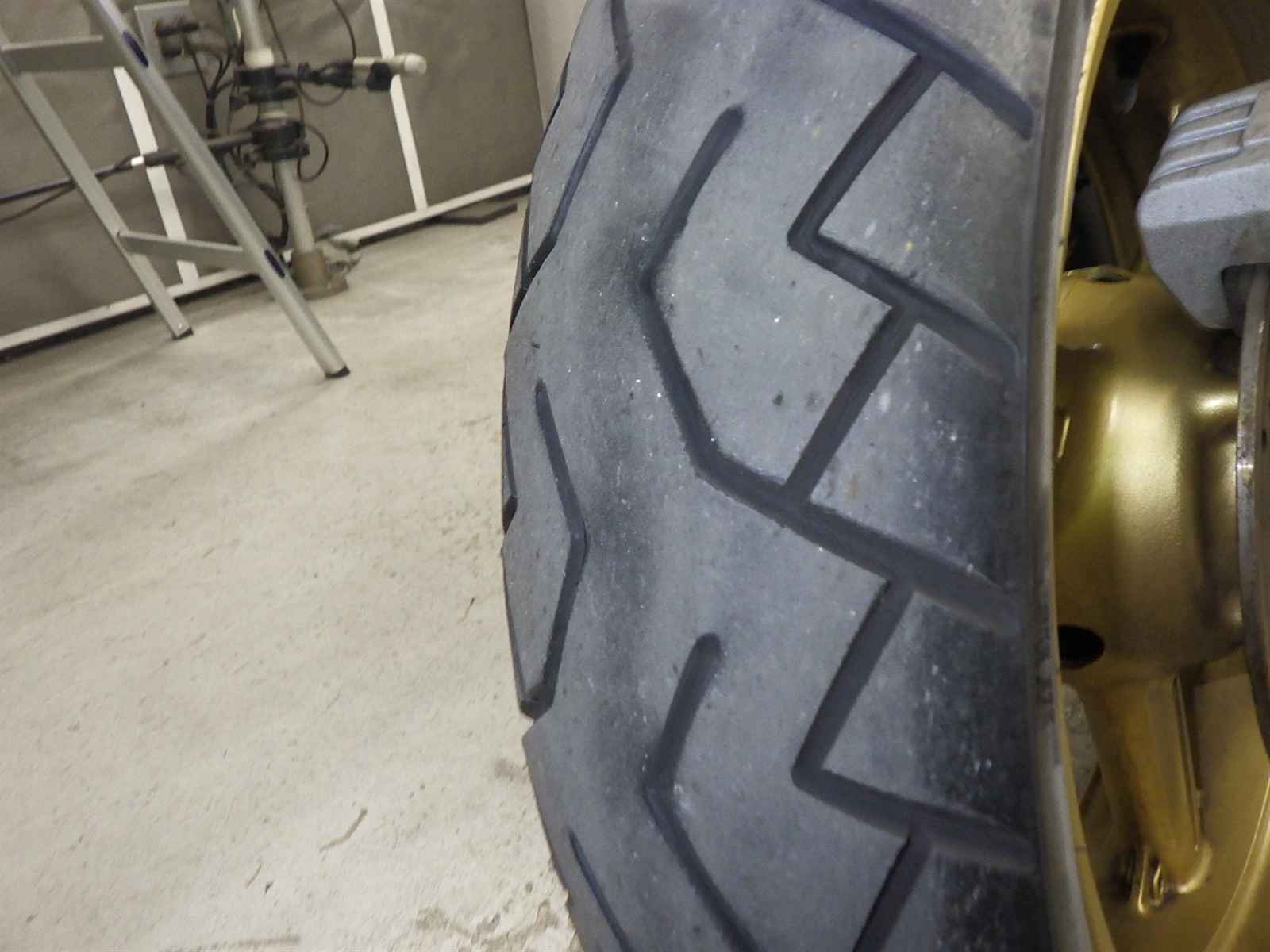 Задняя покрышка: Снижение давления в шине, Трещина требует замены.